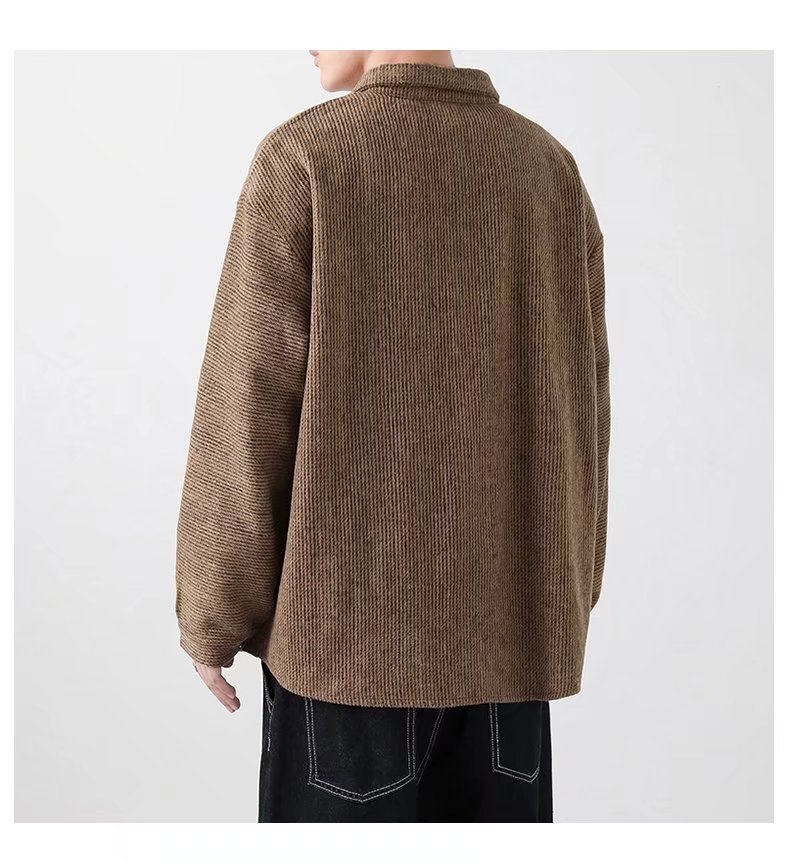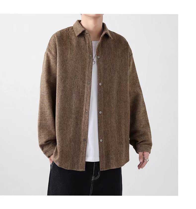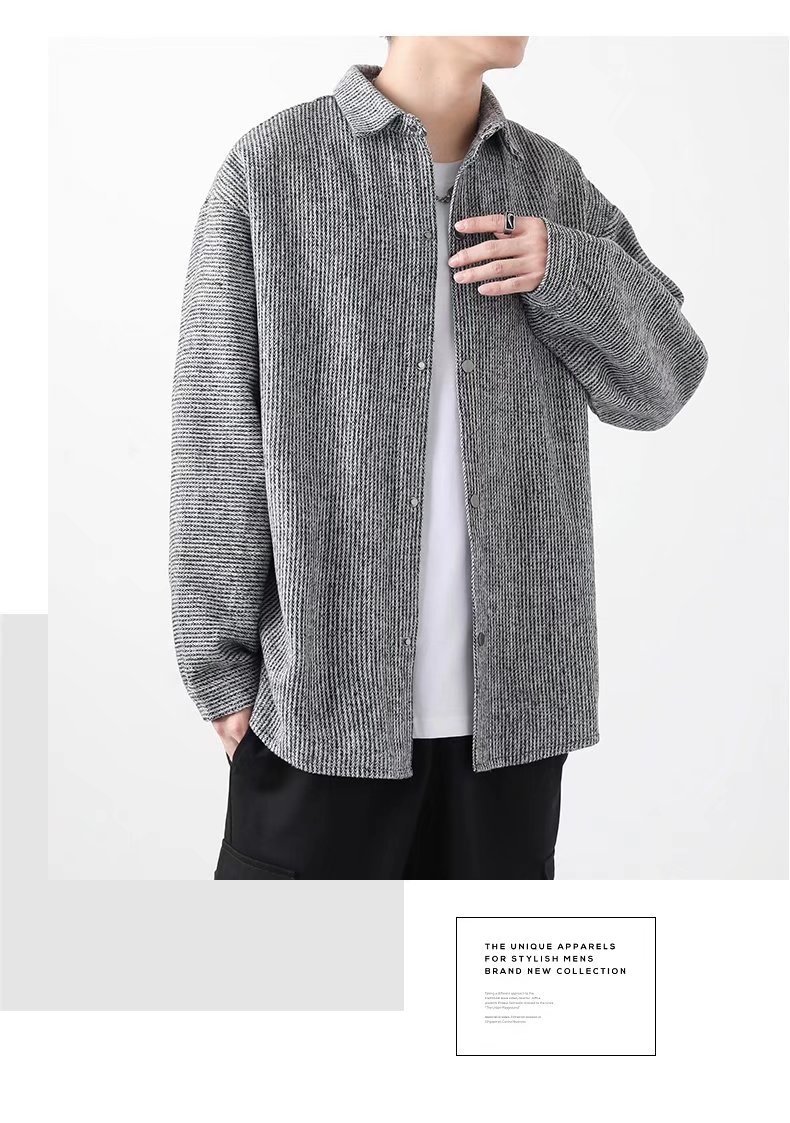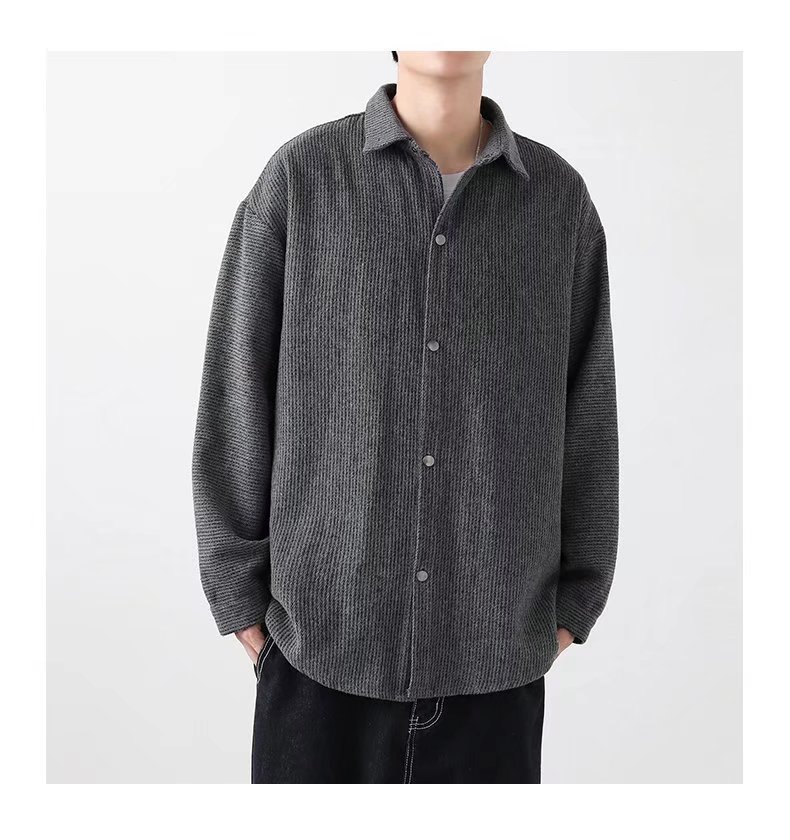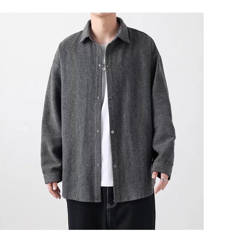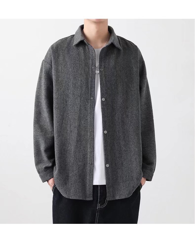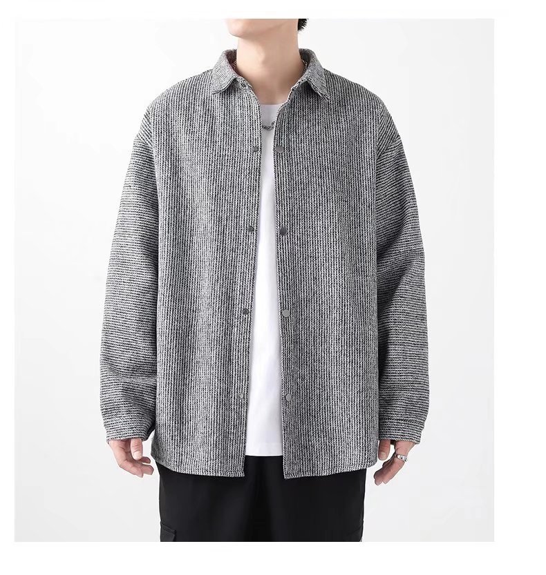 长袖衬衫外套男士春秋季宽松翻领毛呢夹克潮流港风春季休闲上衣服