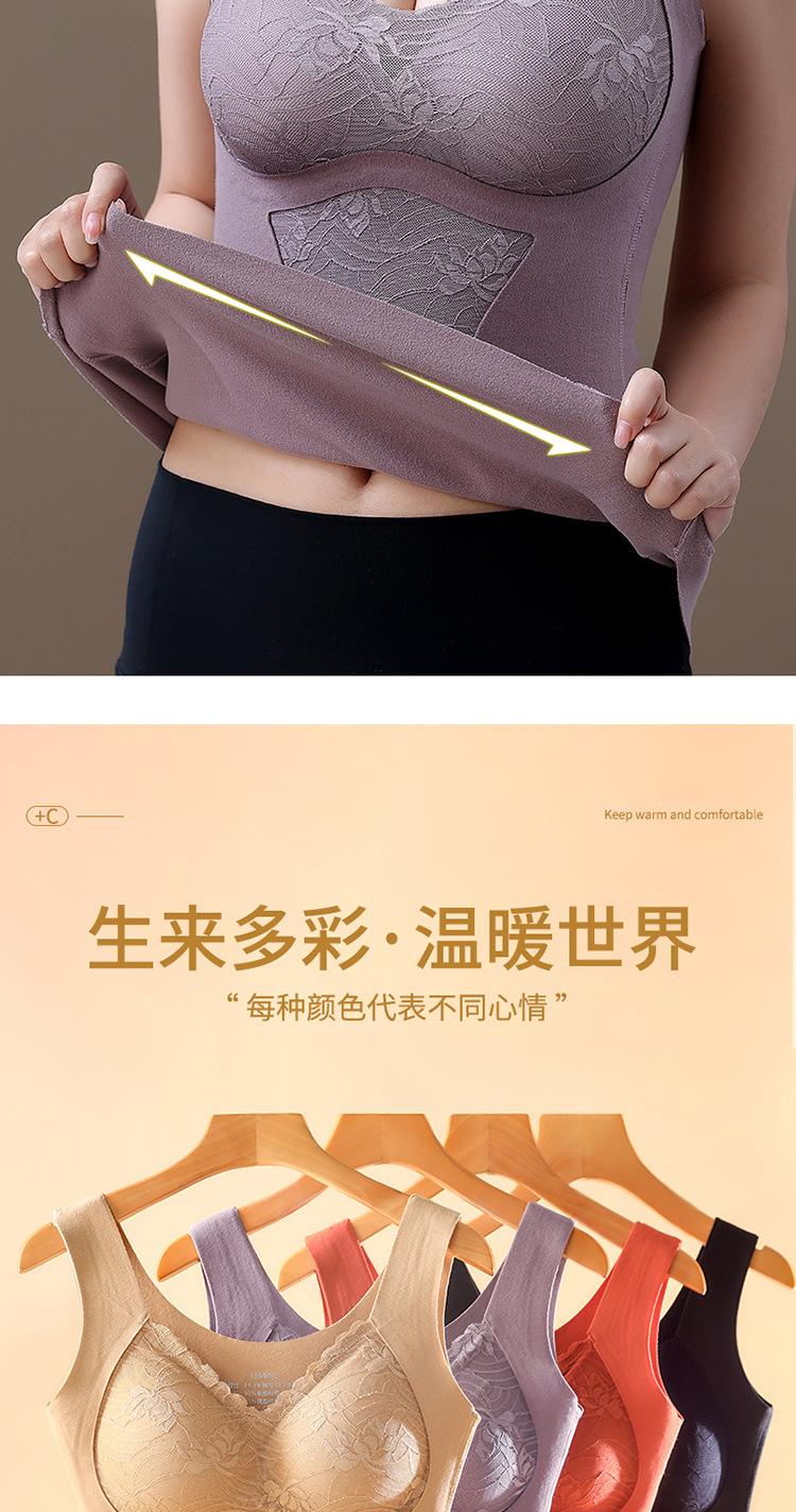 秋冬蕾丝德绒保暖背心固定一体杯打底加厚上衣修身大码保暖内衣女