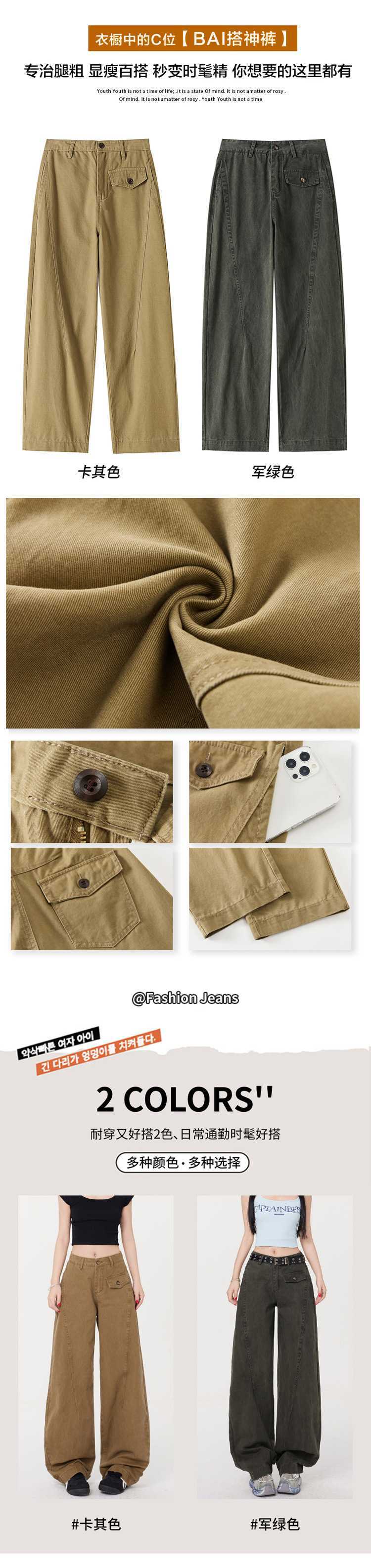 代发批发个性设计口袋春夏美式复古牛仔裤直筒高腰宽松休闲拖地裤