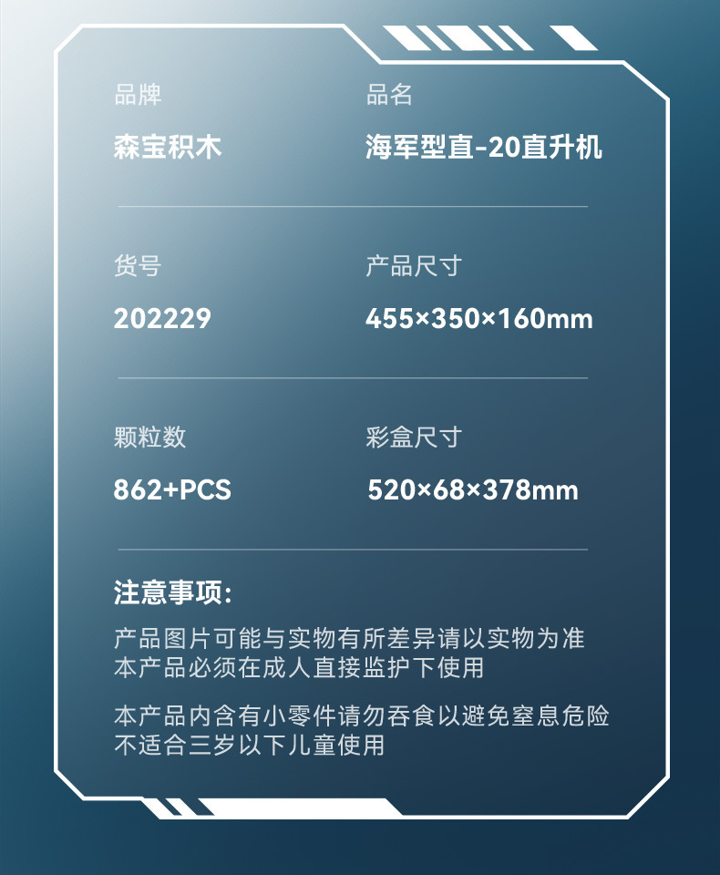 森宝202229海军型直20直升机军事组装模型男孩小颗粒拼装积木玩具