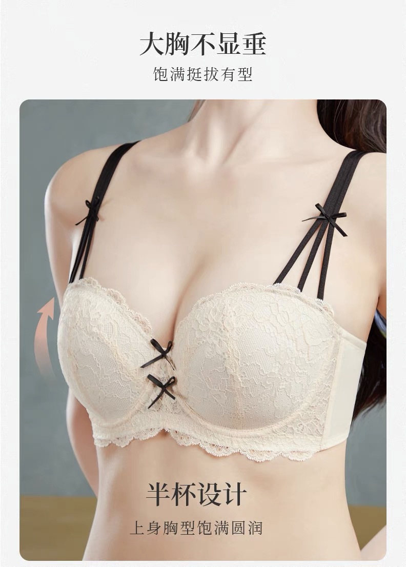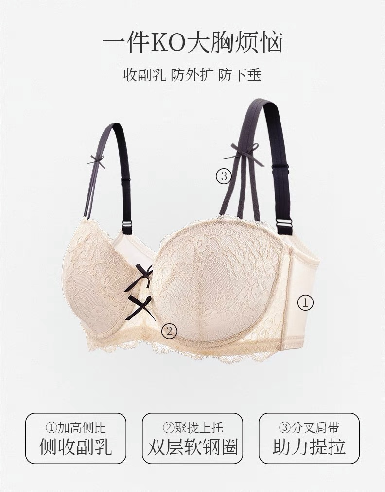 大胸显小胸大码蕾丝内衣女收副乳防下垂调整型文胸罩胖mm跨境美胸