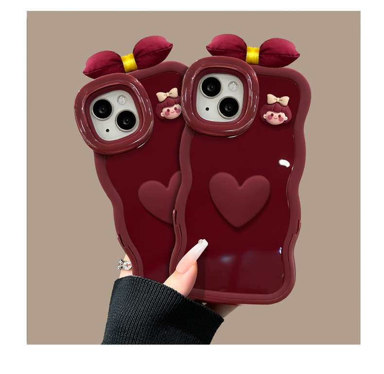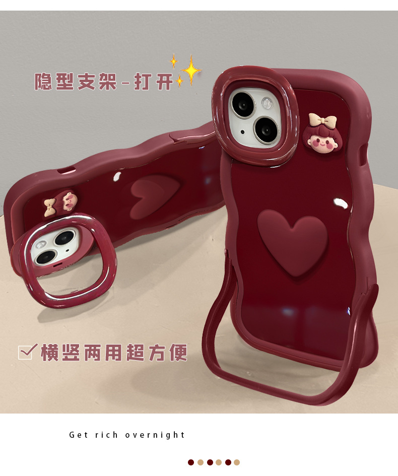 爱心女孩公仔适用苹果17promax手机壳iphone15双支架16蝴蝶结14女