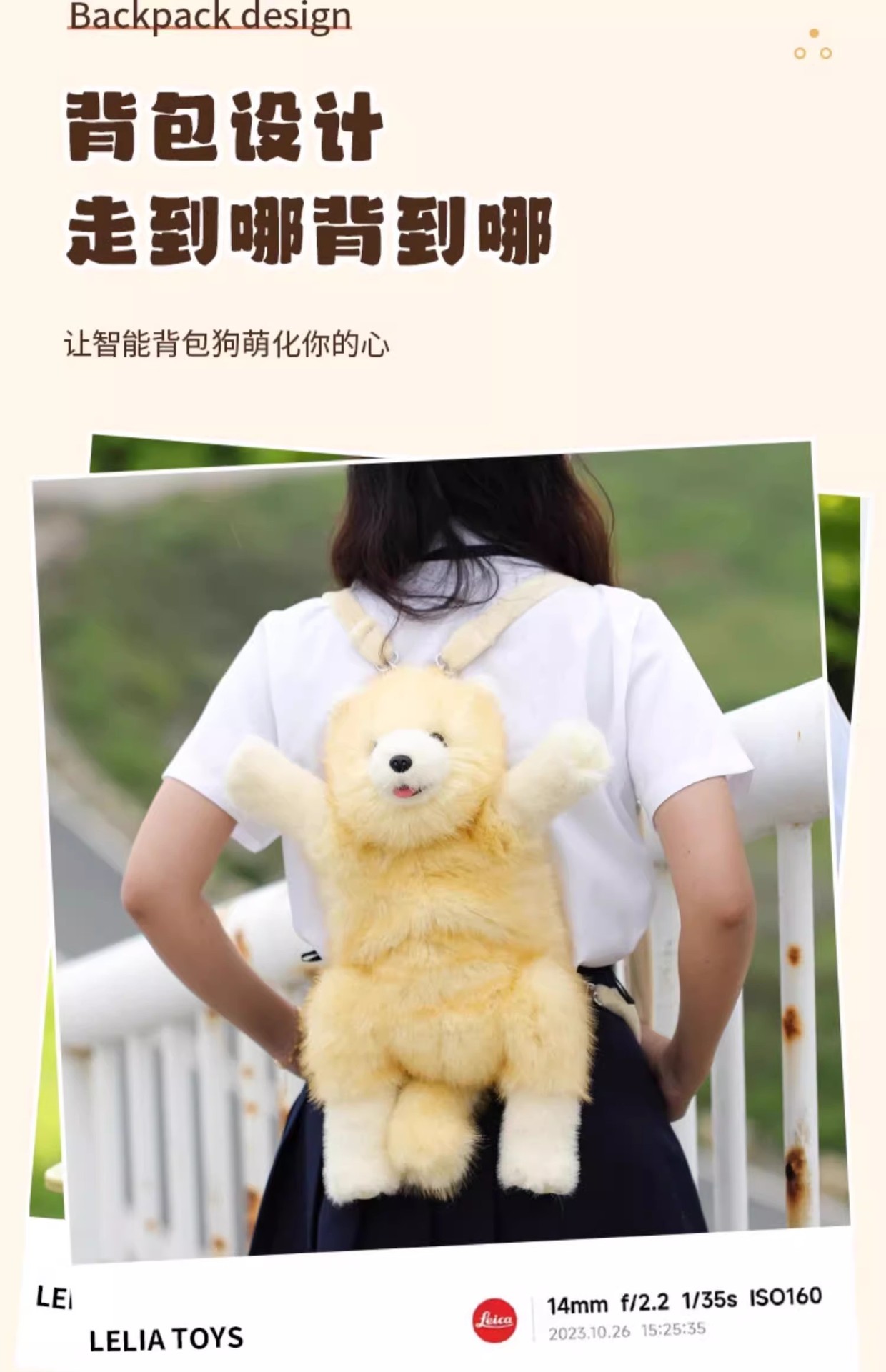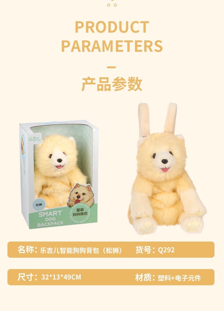 乐吉儿智能背包狗狗可爱松狮犬毛绒玩具会唱歌网红小熊玩偶礼物