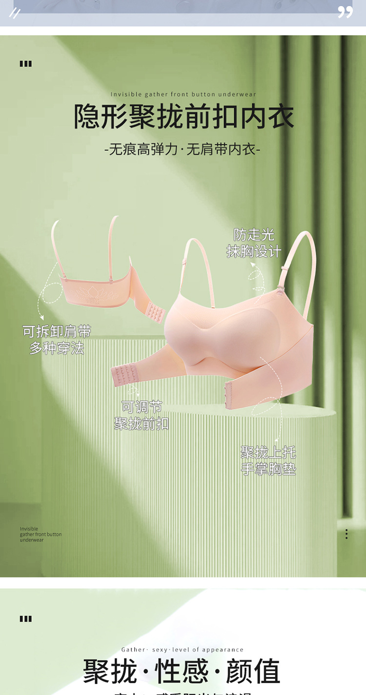 宝娜斯无痕内衣女聚拢小胸夏季无钢圈前扣文胸防滑隐形无痕文胸