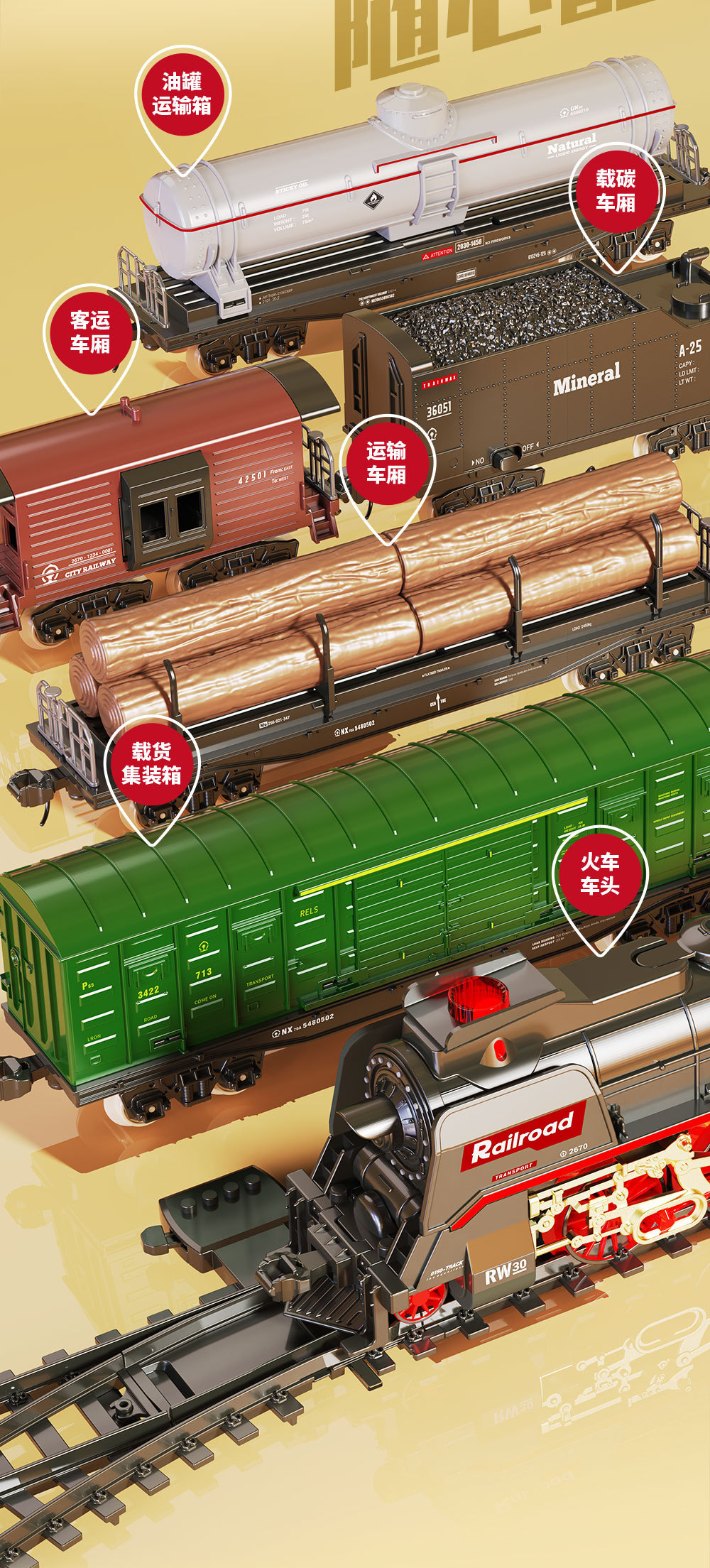 跨境蒸汽小火车轨道玩具仿真高铁停车场儿童男孩电动怀旧模型