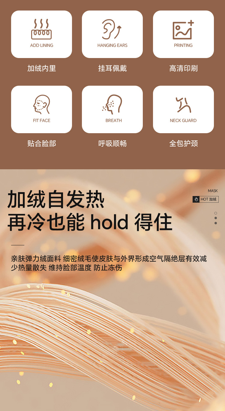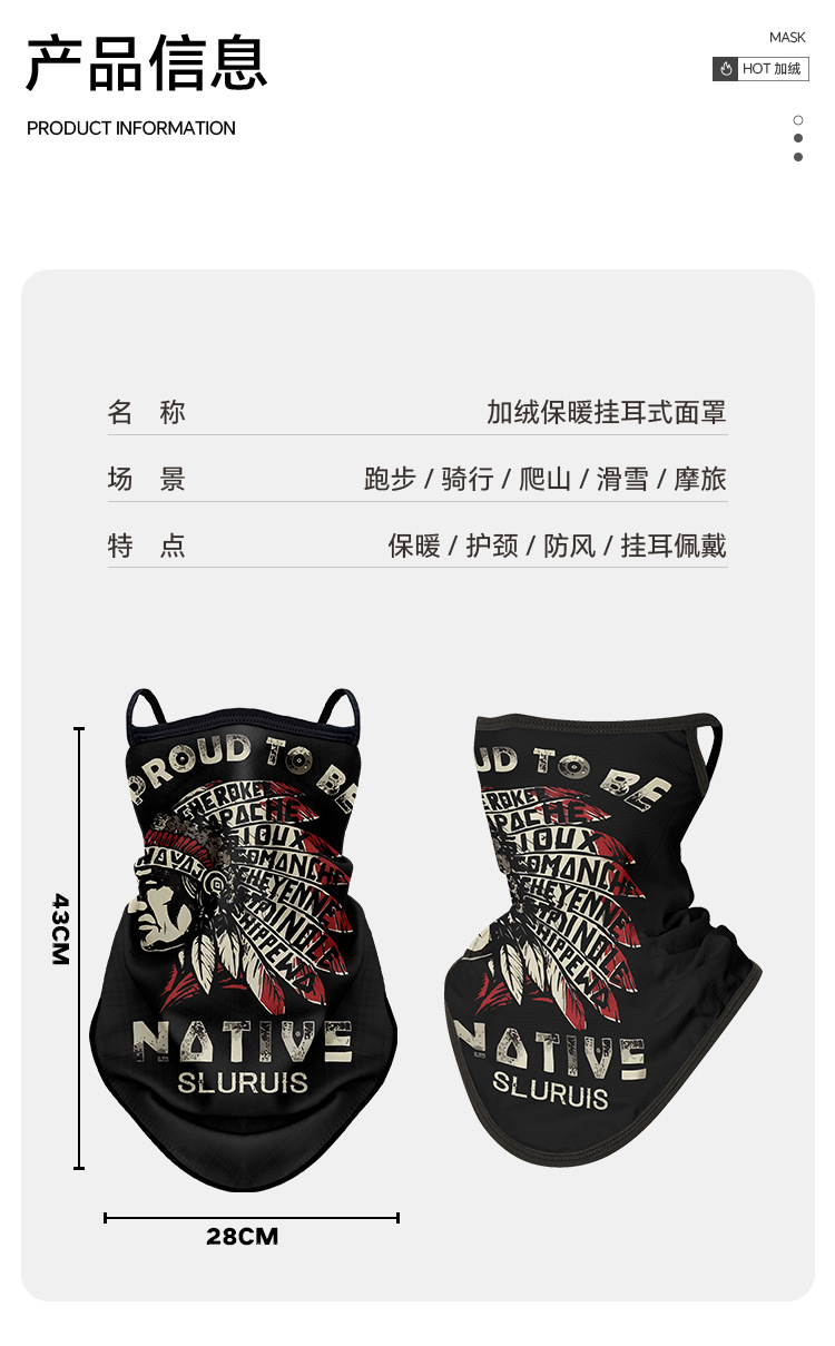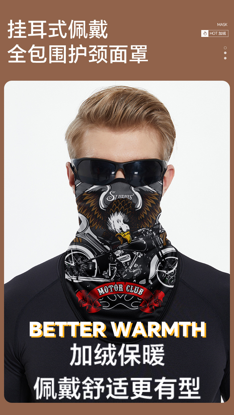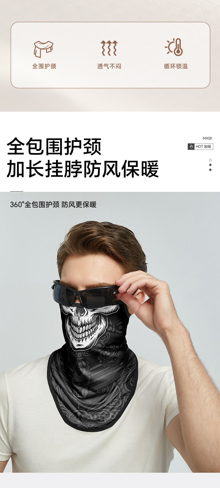 秋冬季机车男骑行加绒挂耳面罩户外登山滑雪防风防寒保暖围脖套女