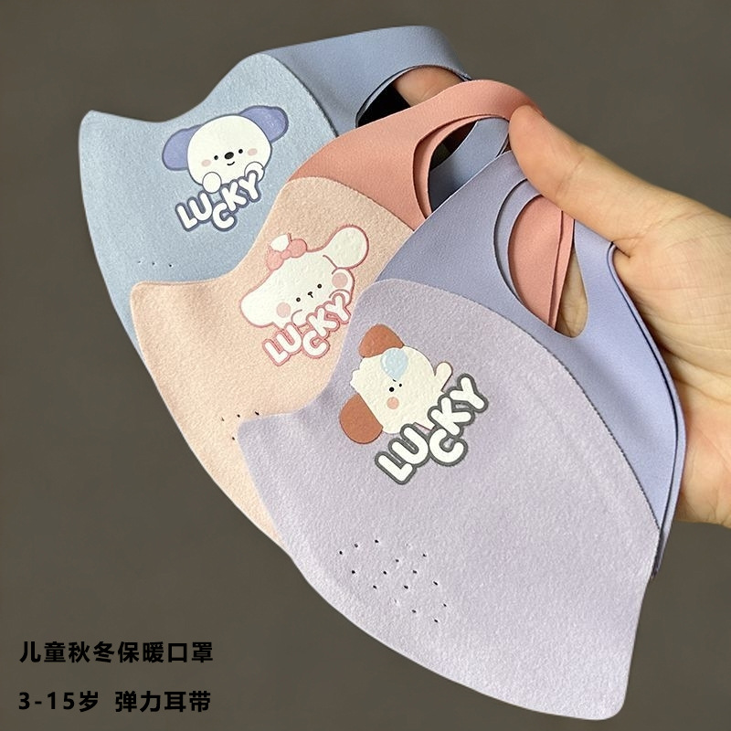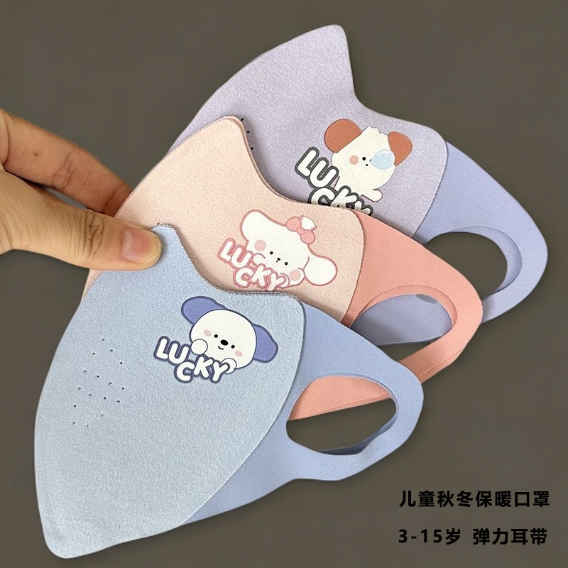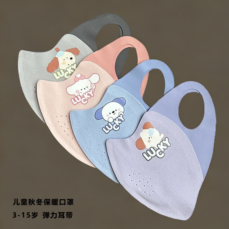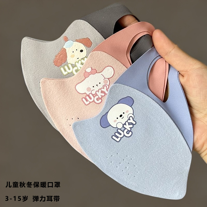 秋冬季儿童保暖口罩男女童3-15岁学生防风防寒透气高颜值德绒面罩