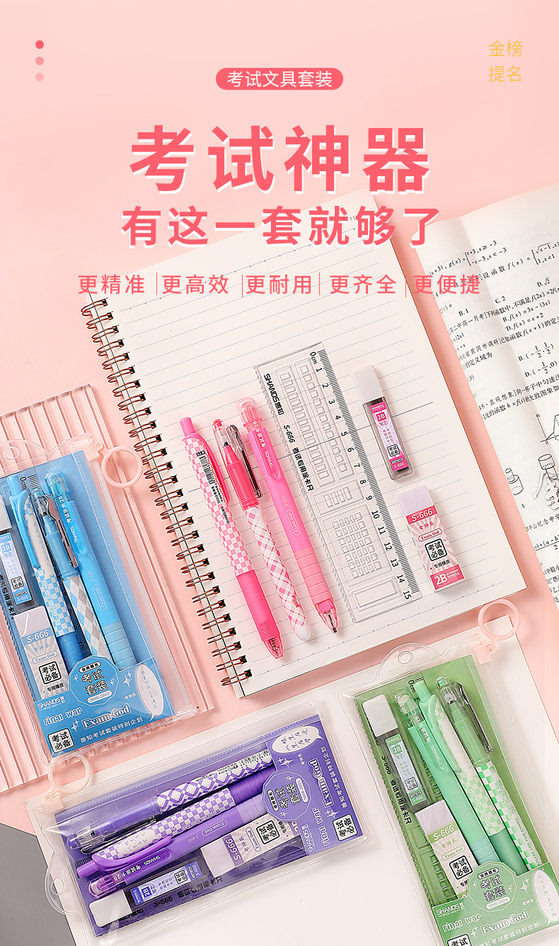 善知考试文具套装学生中考高考铅笔橡皮尺子学习文具考试答题套装