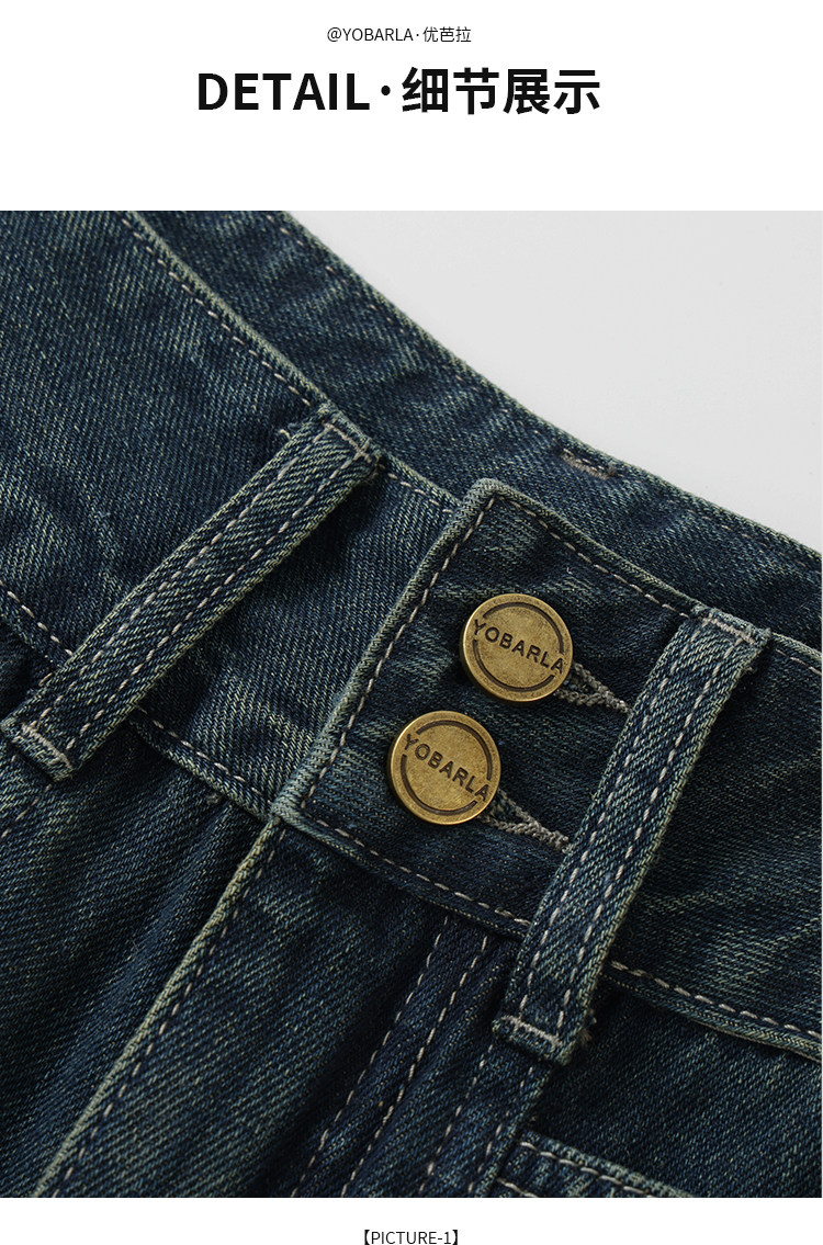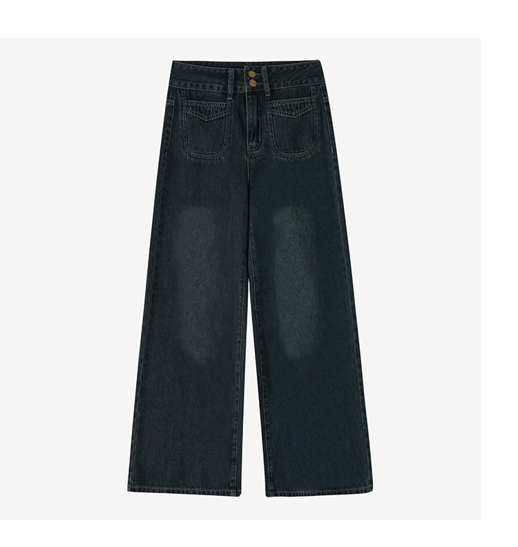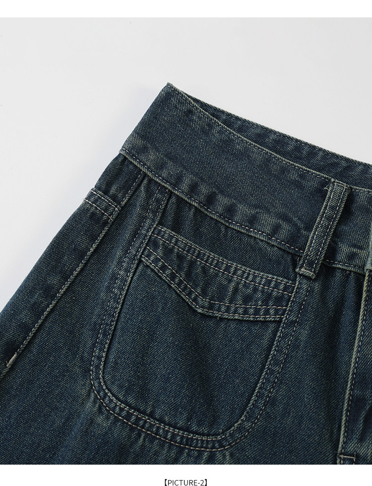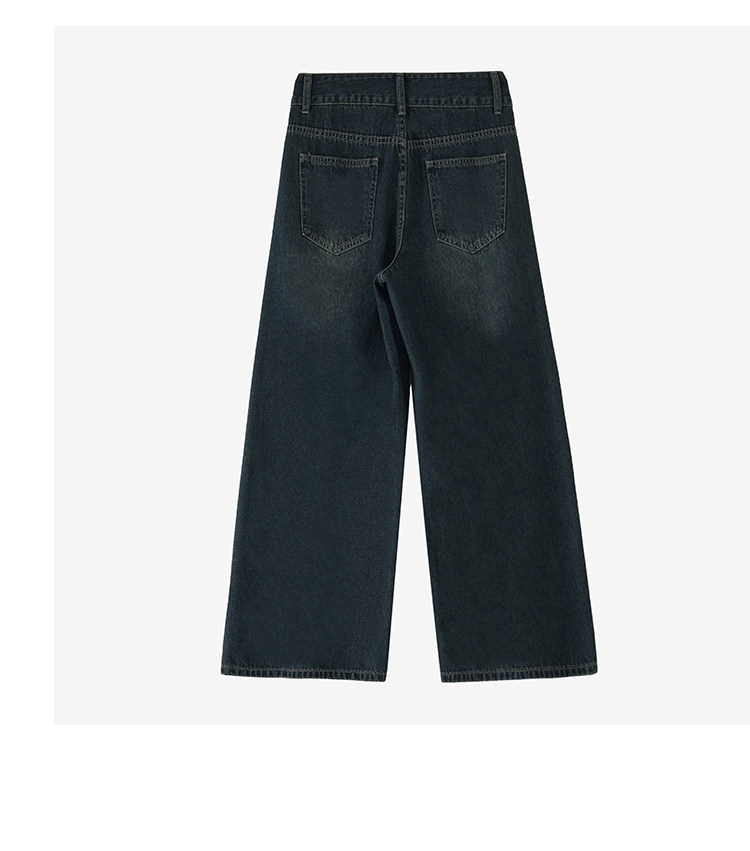 复古蓝阔腿牛仔裤女秋季新款大码胖mm宽松显瘦梨形身材高腰直筒裤