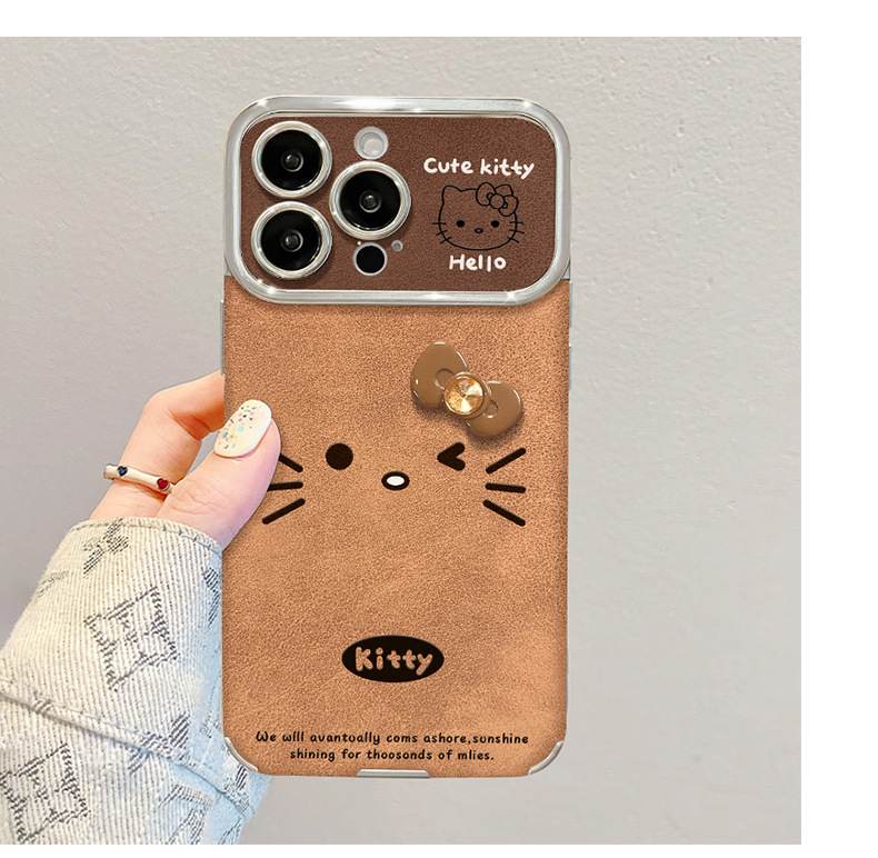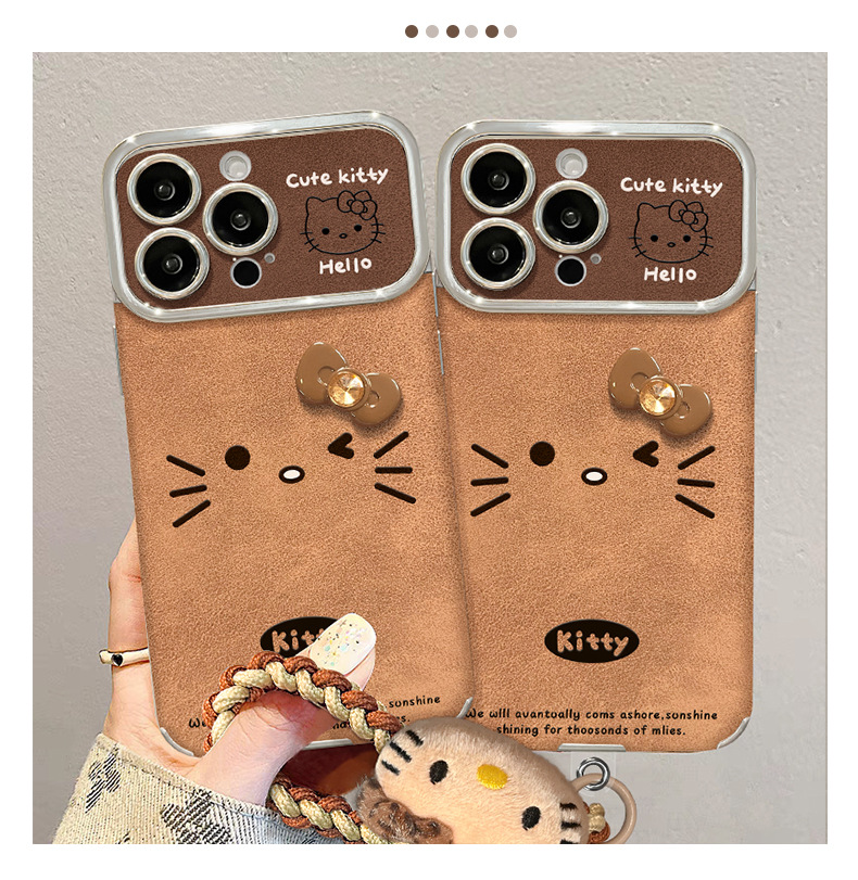 猫咪蝴蝶结挂绳适用苹果13PRO手机壳12大视窗翻毛皮11电镀美拉德X