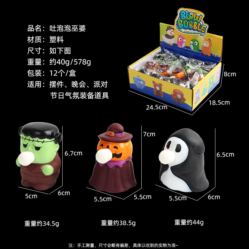万圣节吐泡泡巫婆解压玩具减压搞怪发泄吹泡泡捏捏乐玩具气氛道具