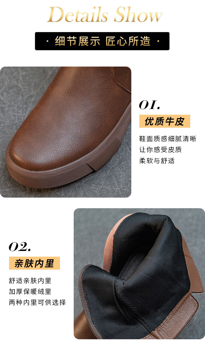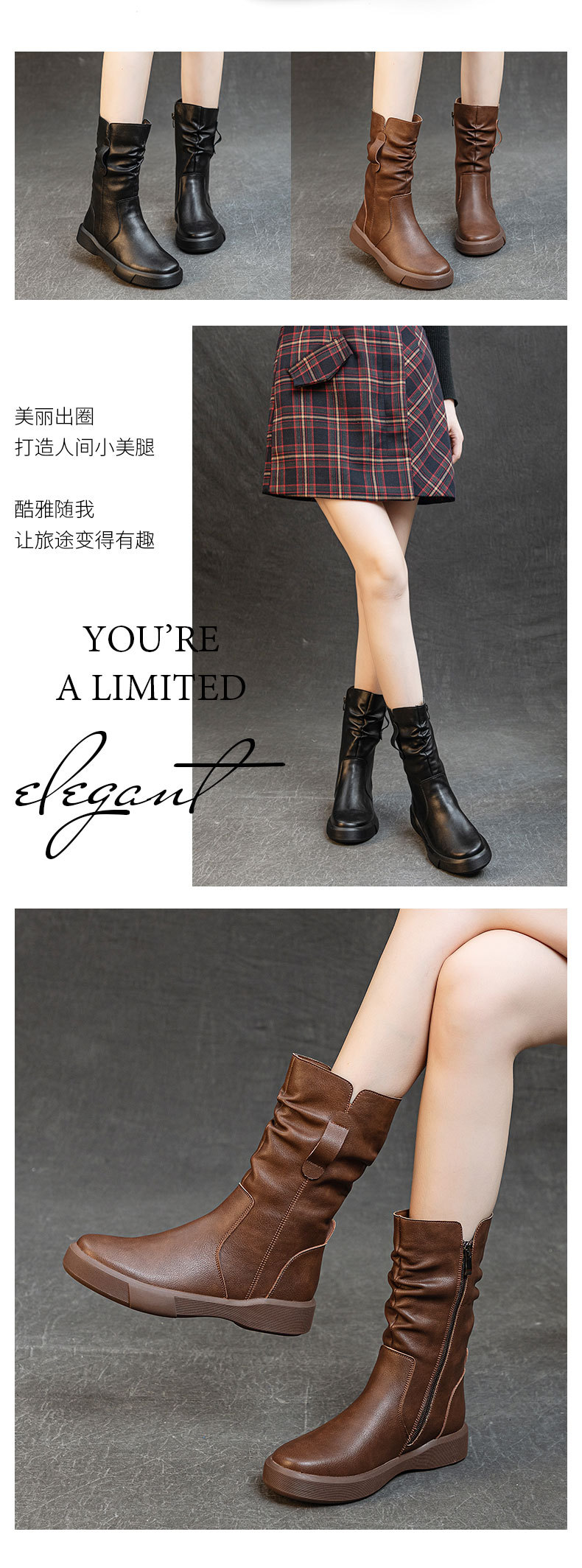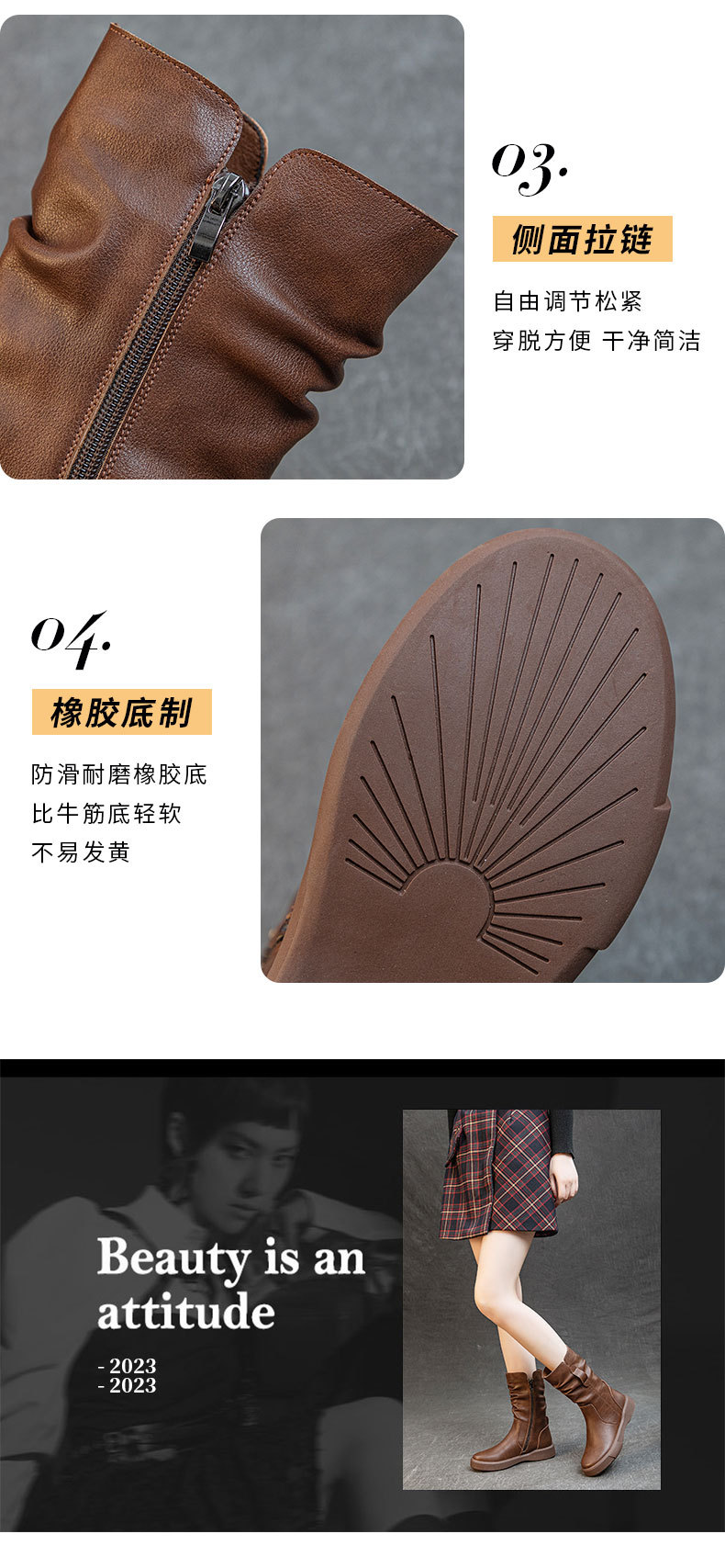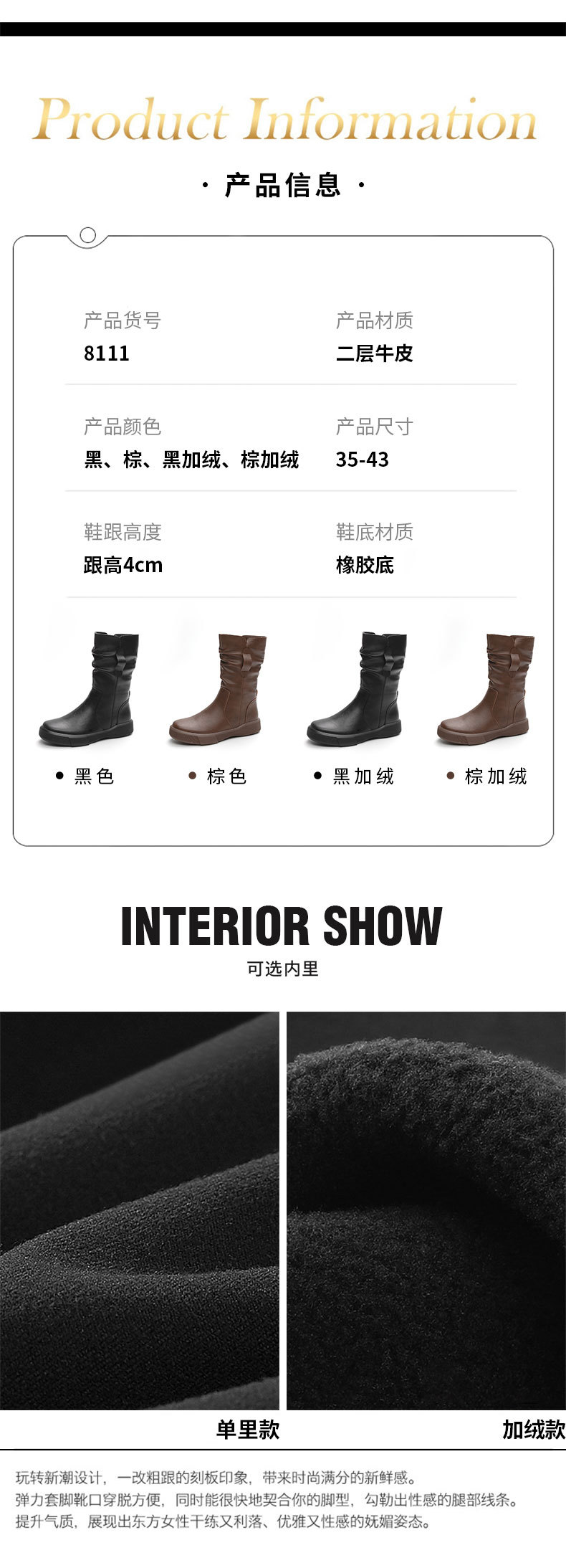 欧美简约百搭真皮马丁靴女秋冬季棕色中筒靴透气保暖粗跟厚底靴子
