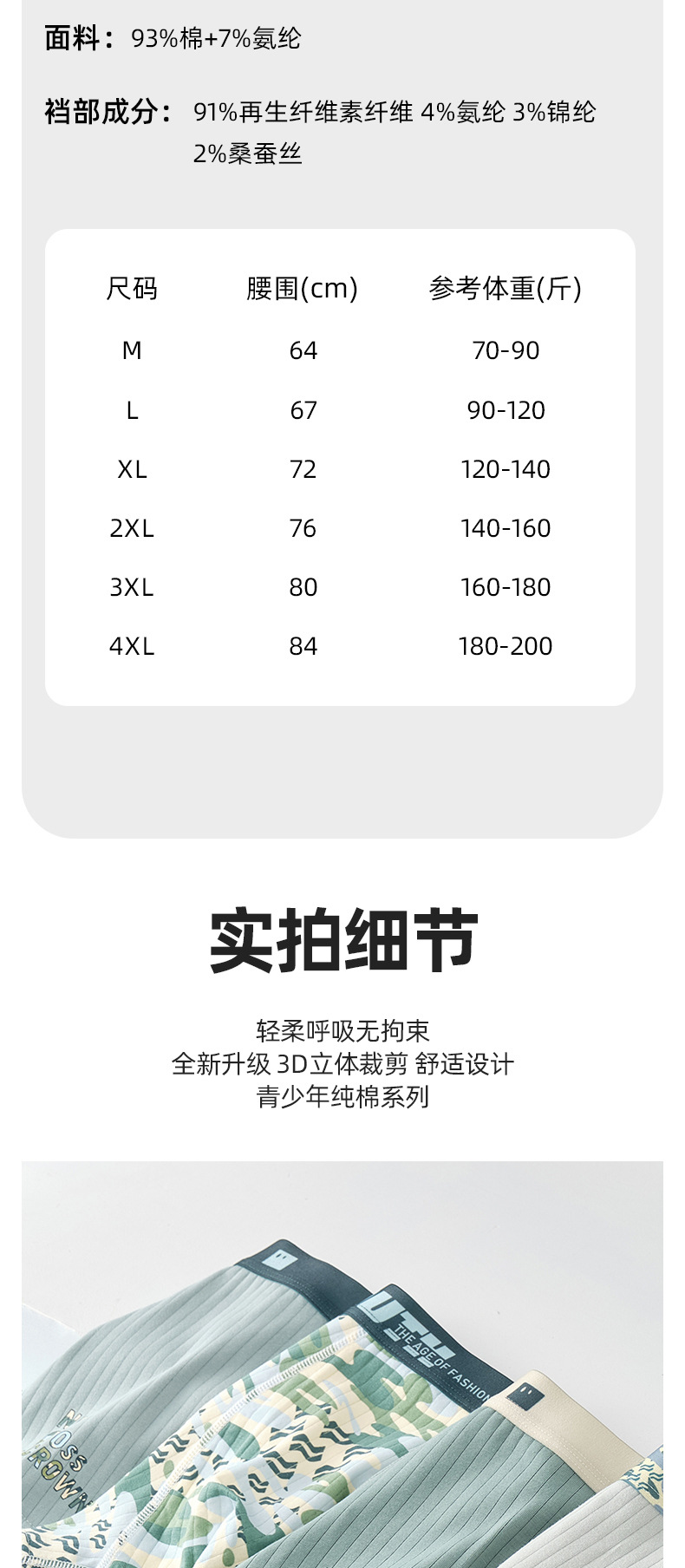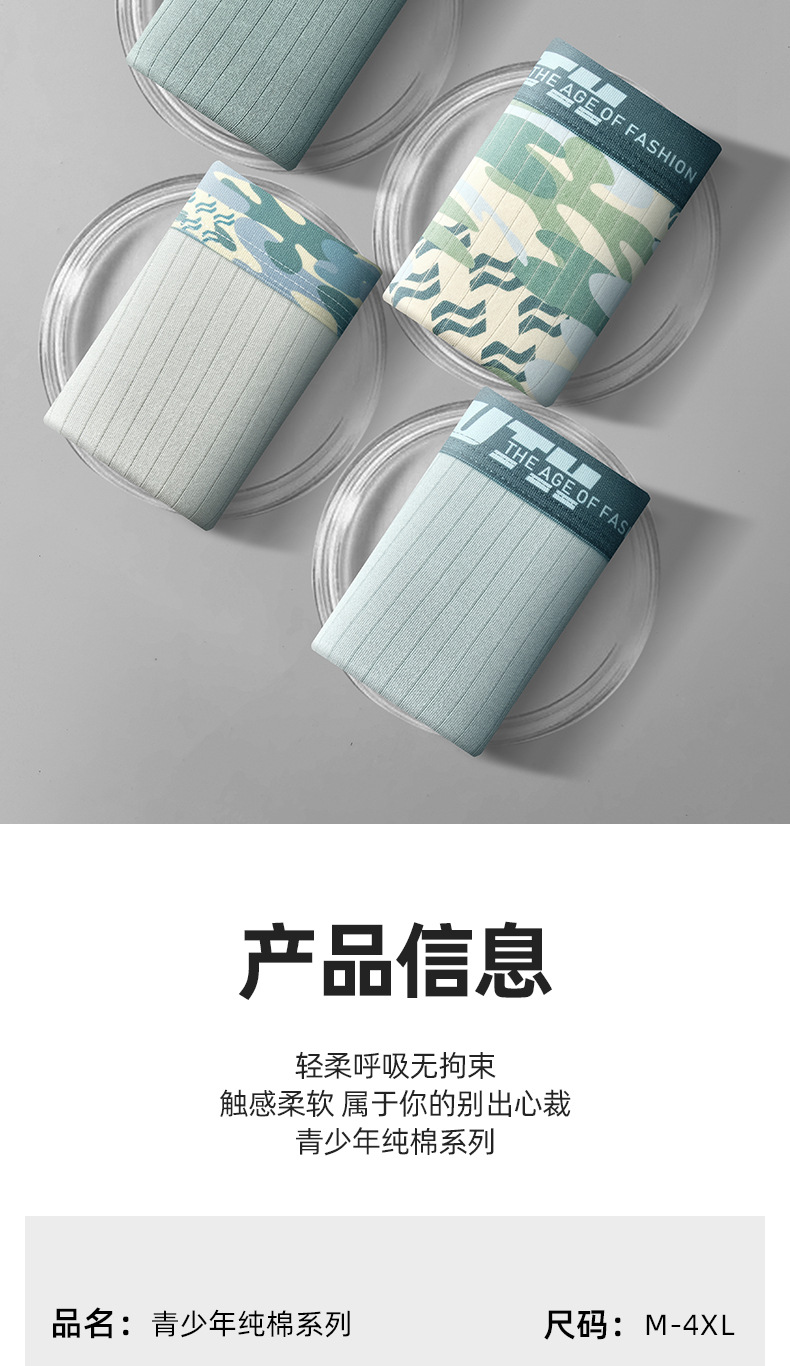 儿童内裤青少年男童a类棉10-15岁平角大码男孩大童四角短裤不夹pp
