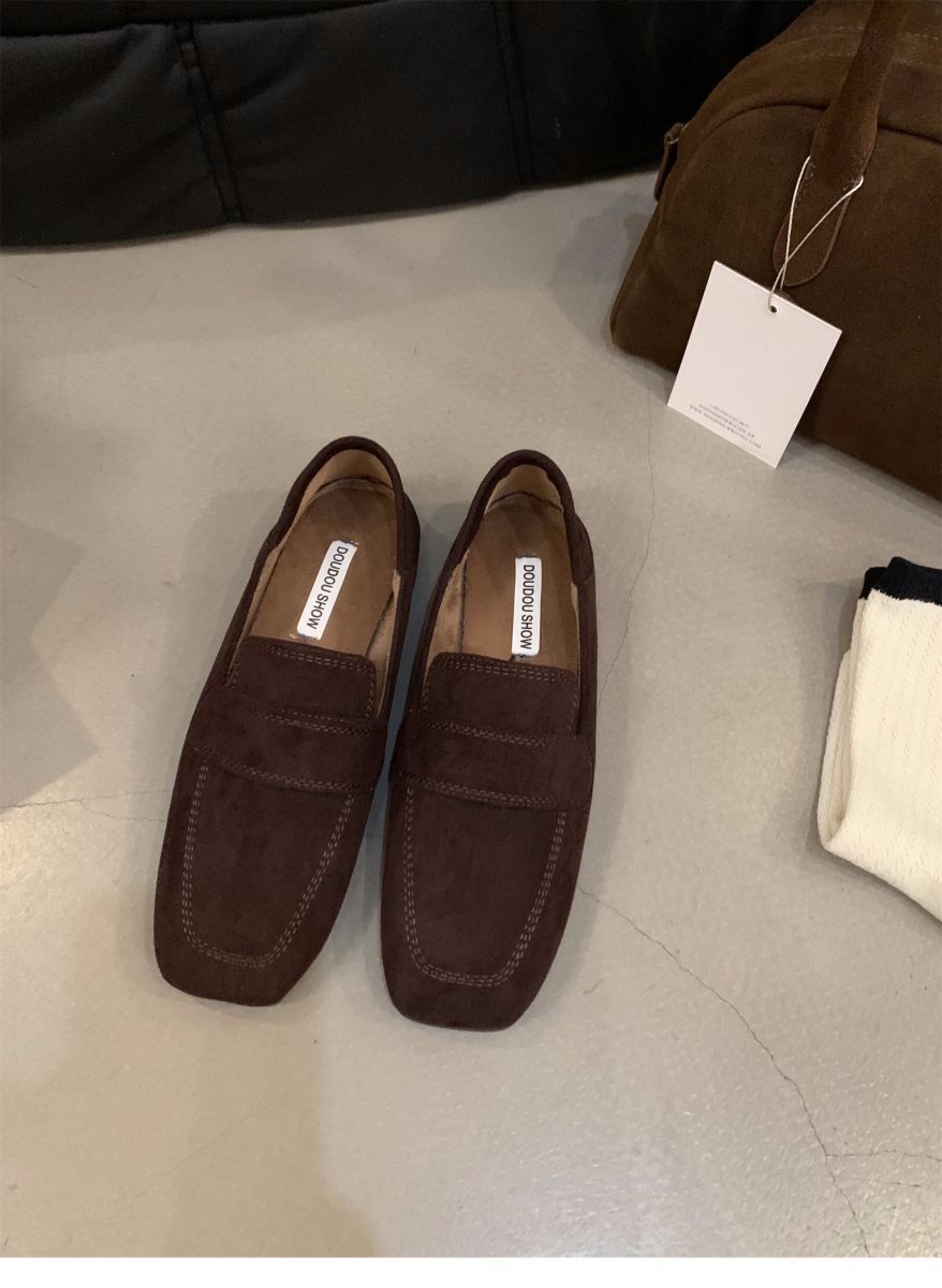 平底复古绒面乐福鞋黑色单鞋女鞋子2025新款秋冬季软底加绒小皮鞋