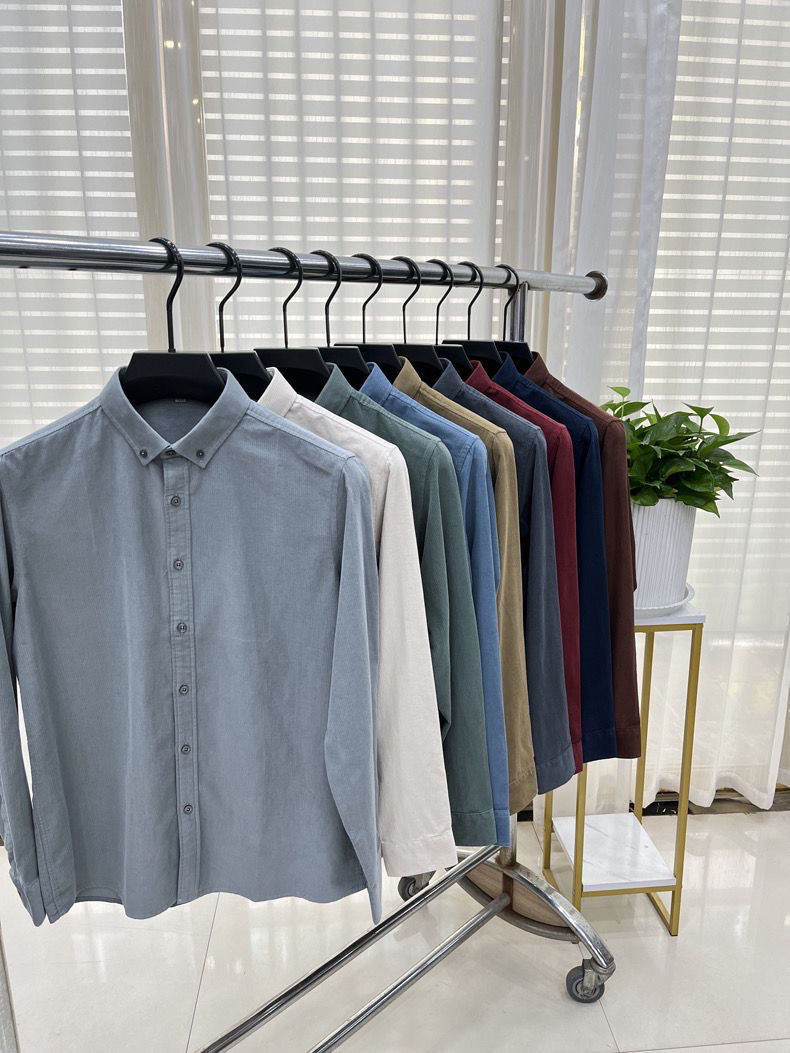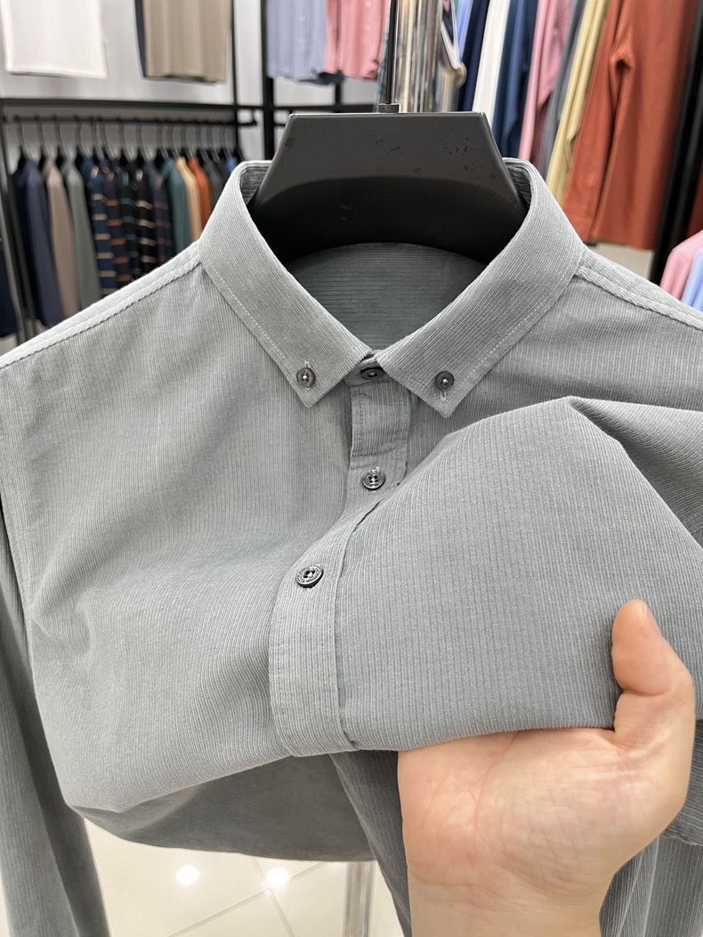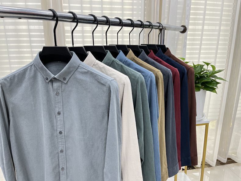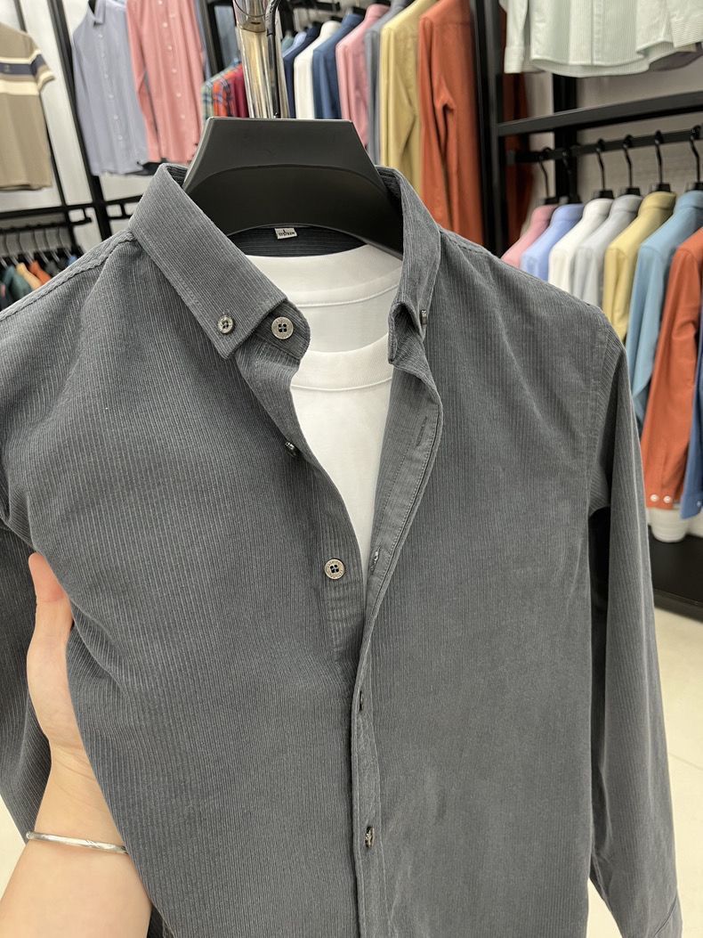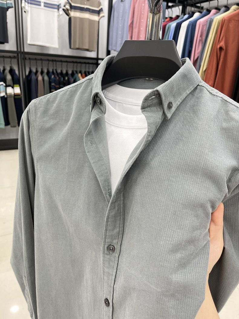 新款灯芯绒长袖衬衫男士纯色秋季时尚休闲春秋款男装衬衣上衣服潮