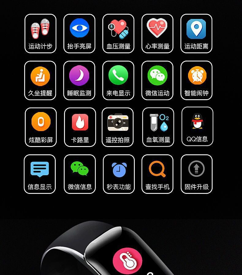 多功能大彩屏防水电子智能手环男女监测血压心率运动手表计步通用