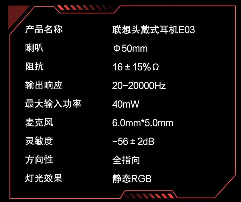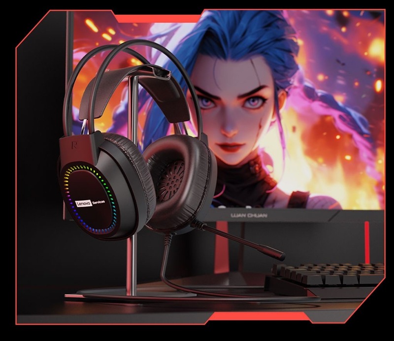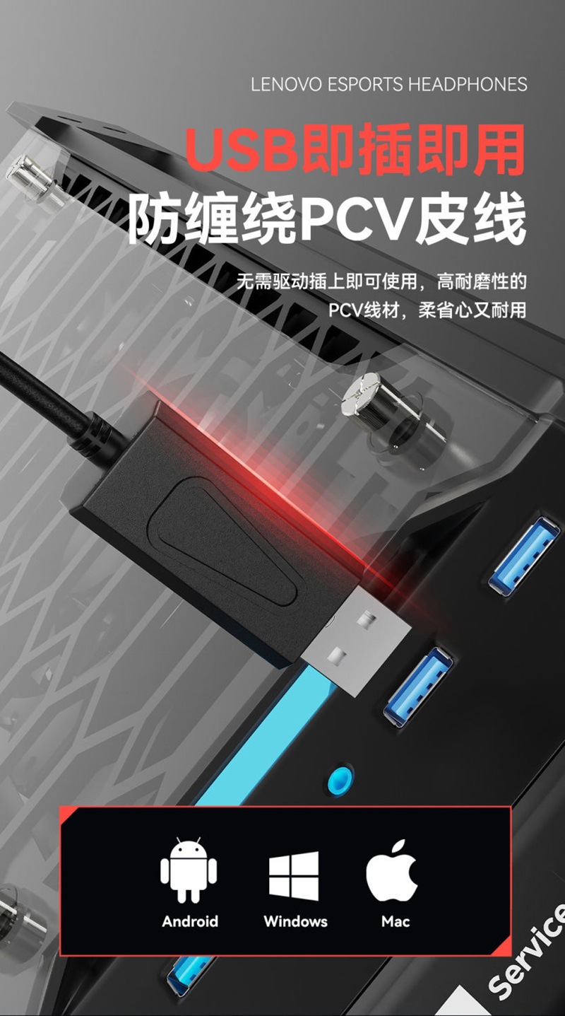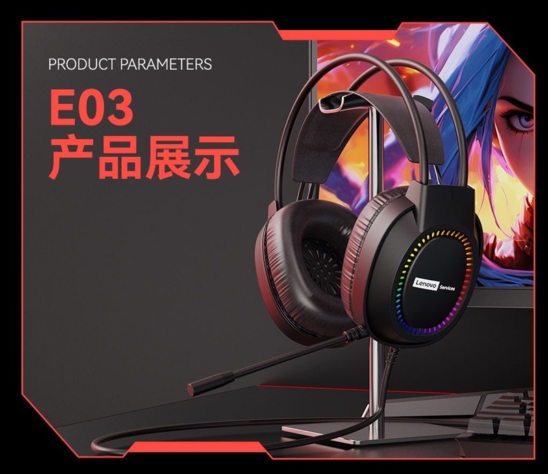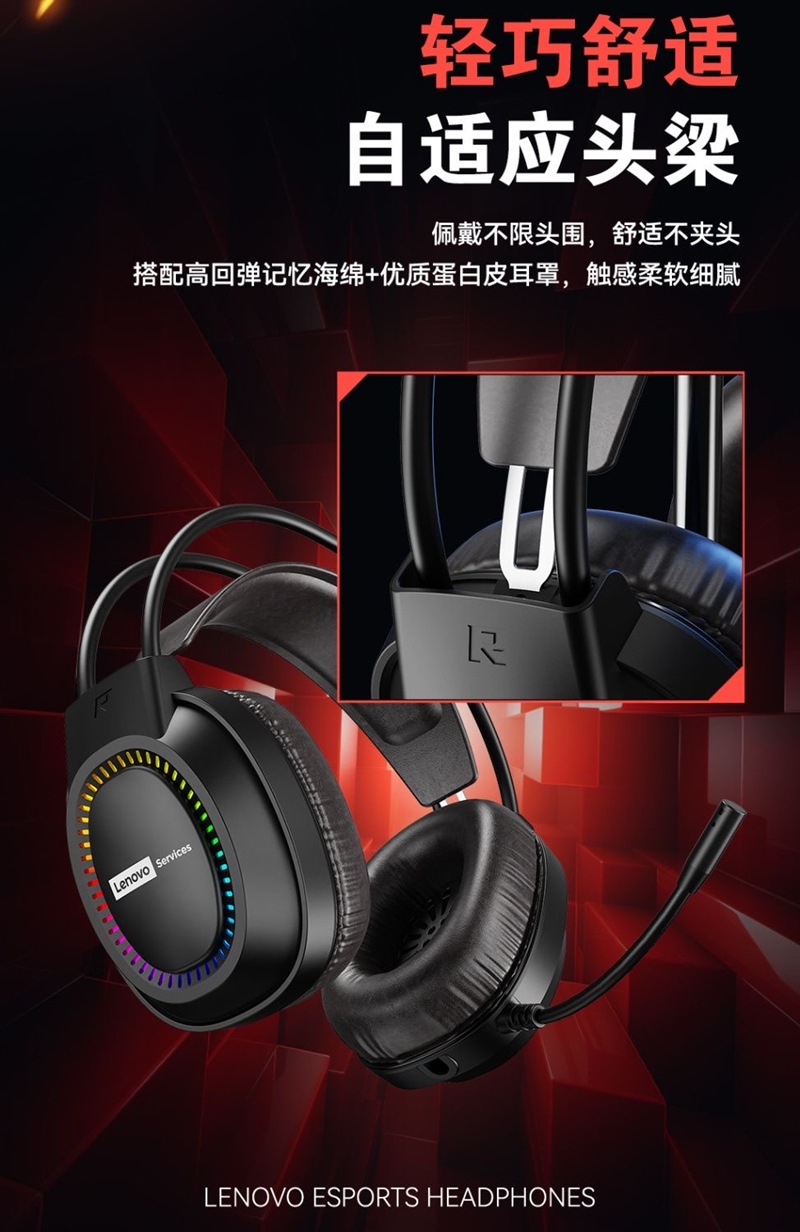 lenvo联E03头戴式笔记本台机电脑耳机USB有线耳麦7.1声道电竞游戏