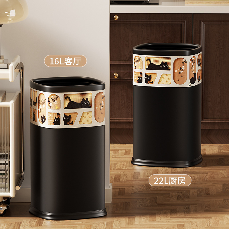 垃圾桶家用新款高颜值客厅厨房无盖卫生间大理石纹方形筒大容量