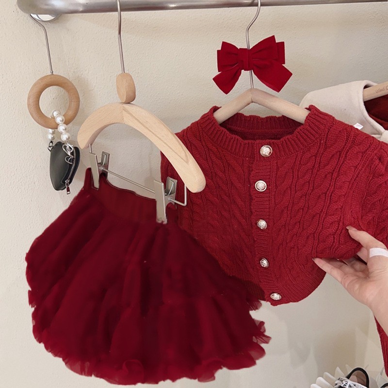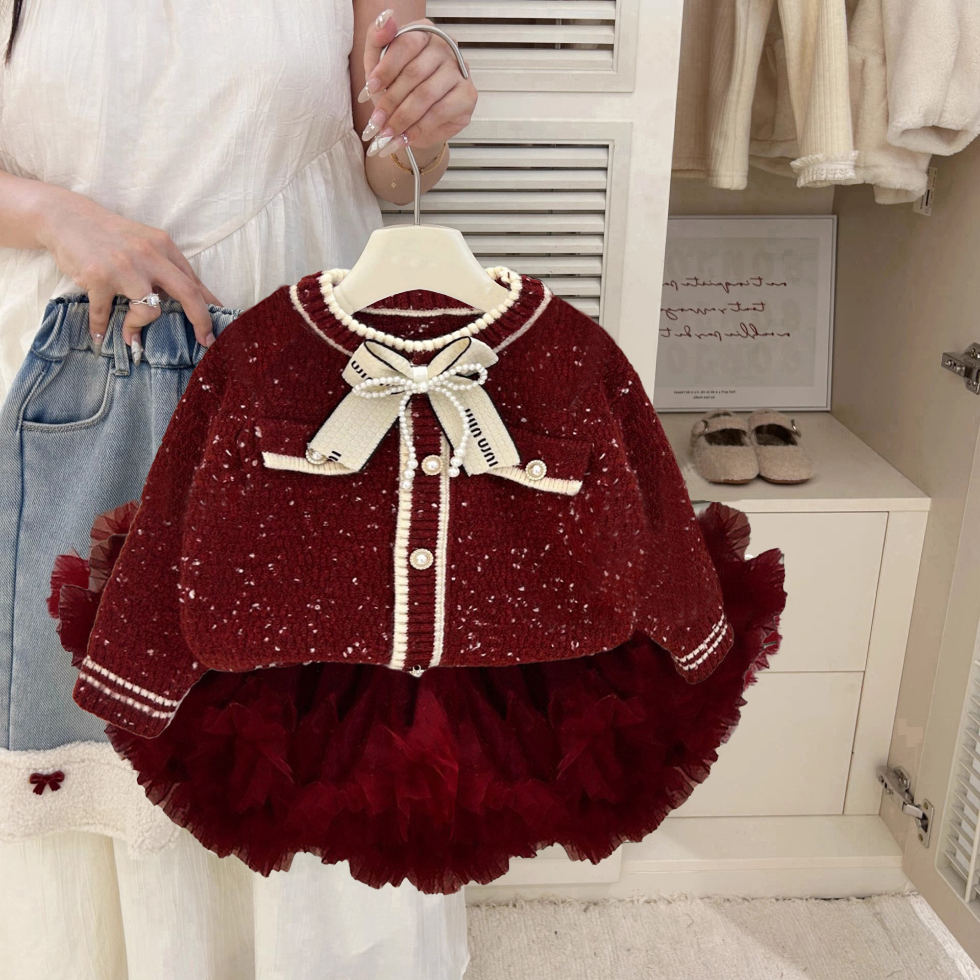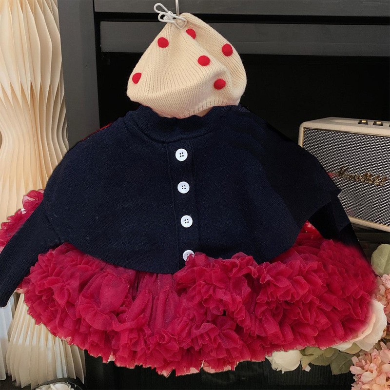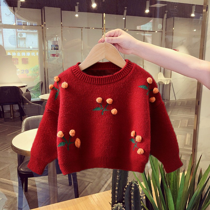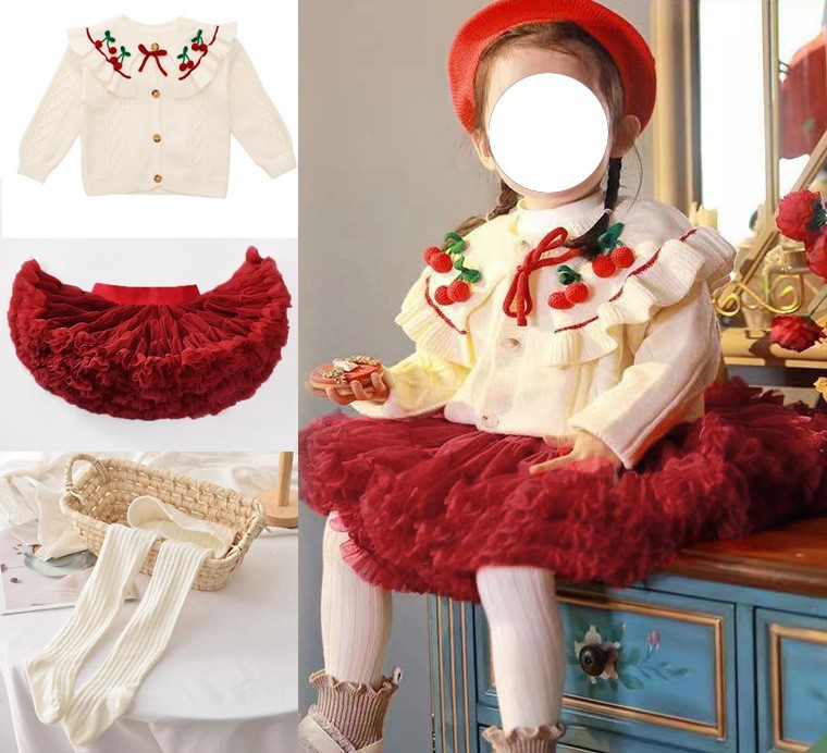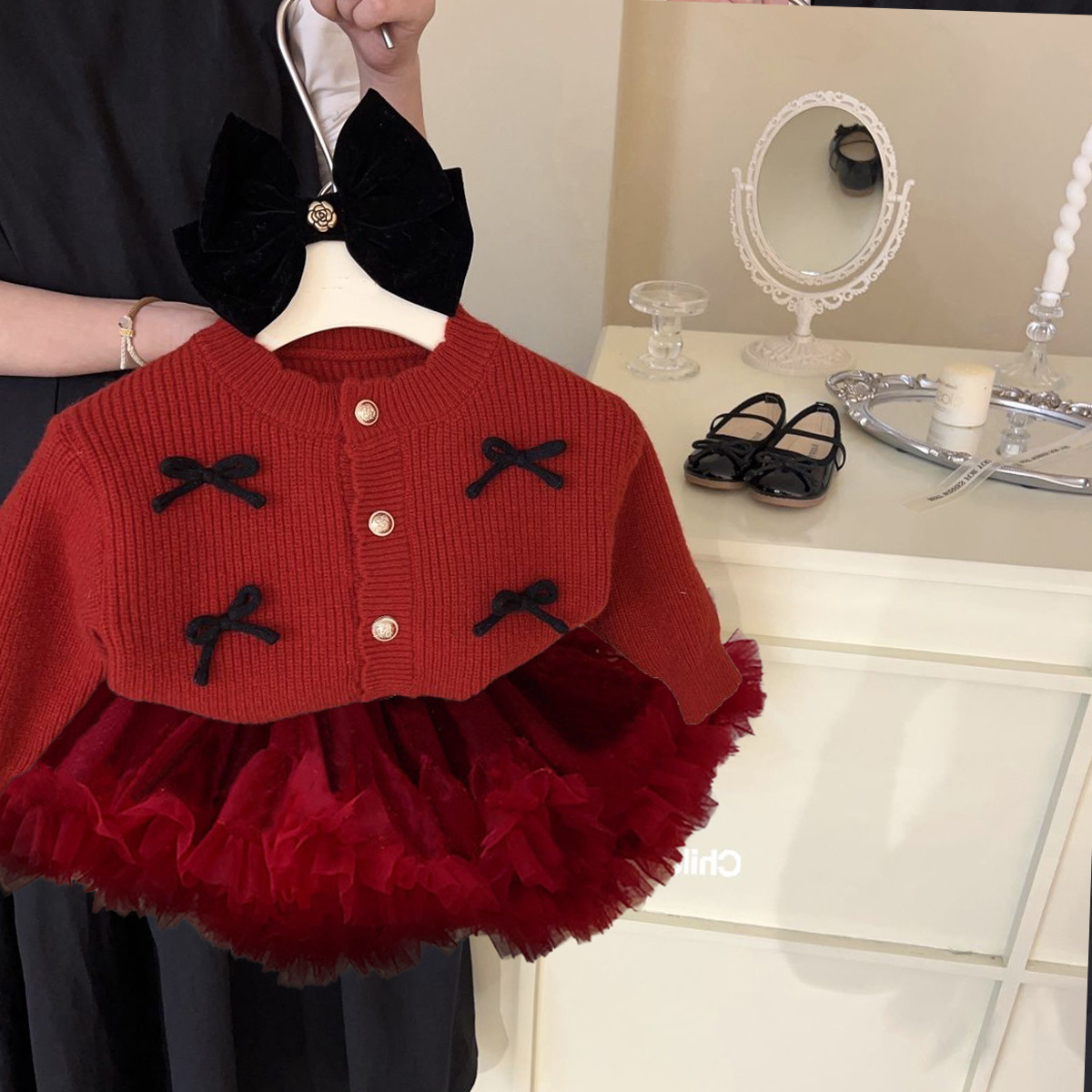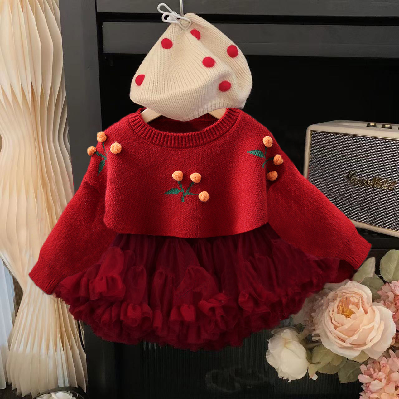 秋冬童装新款女童红色毛衣针织小樱桃针织衫宝宝蓬蓬裙子tutu裙