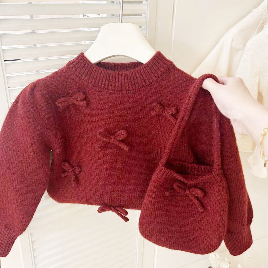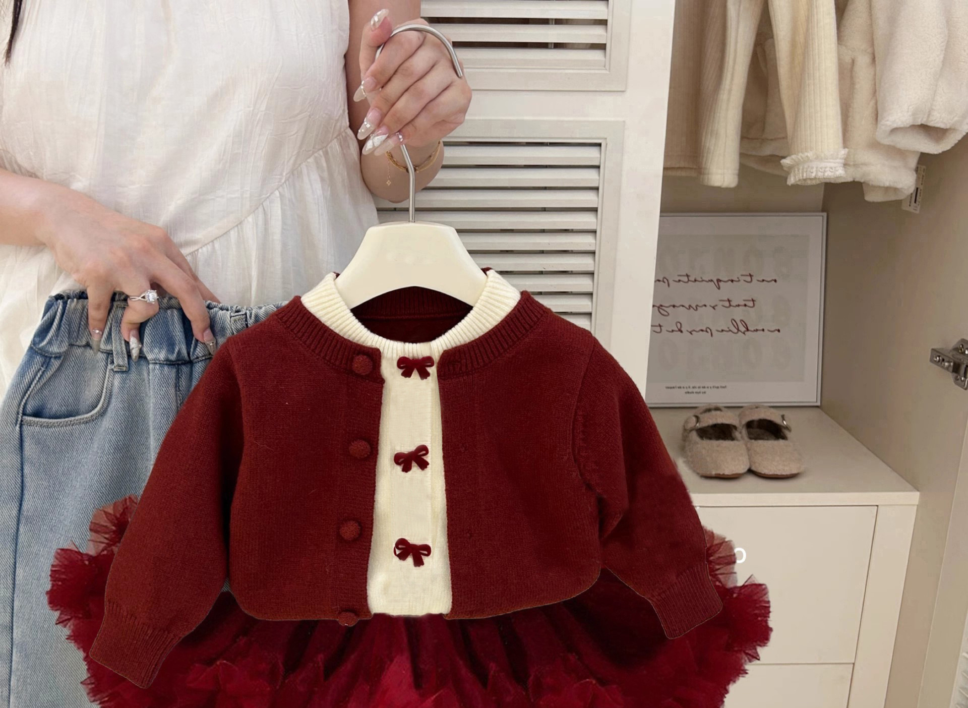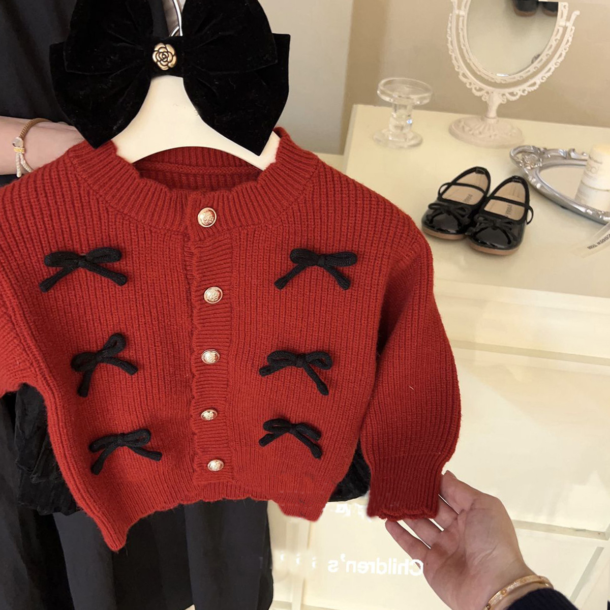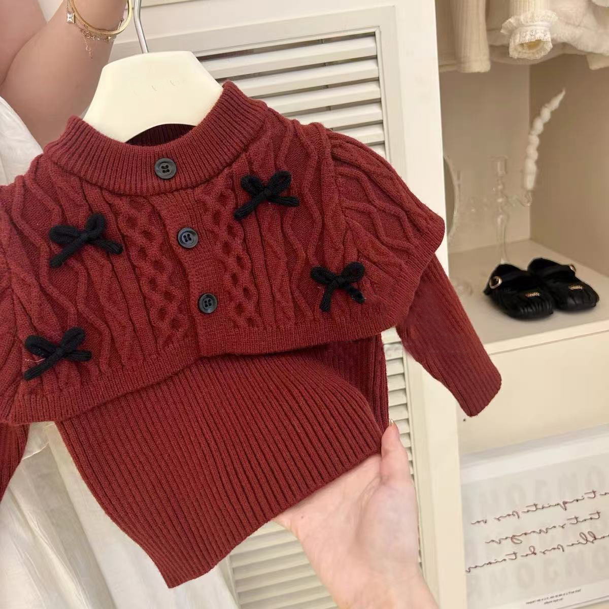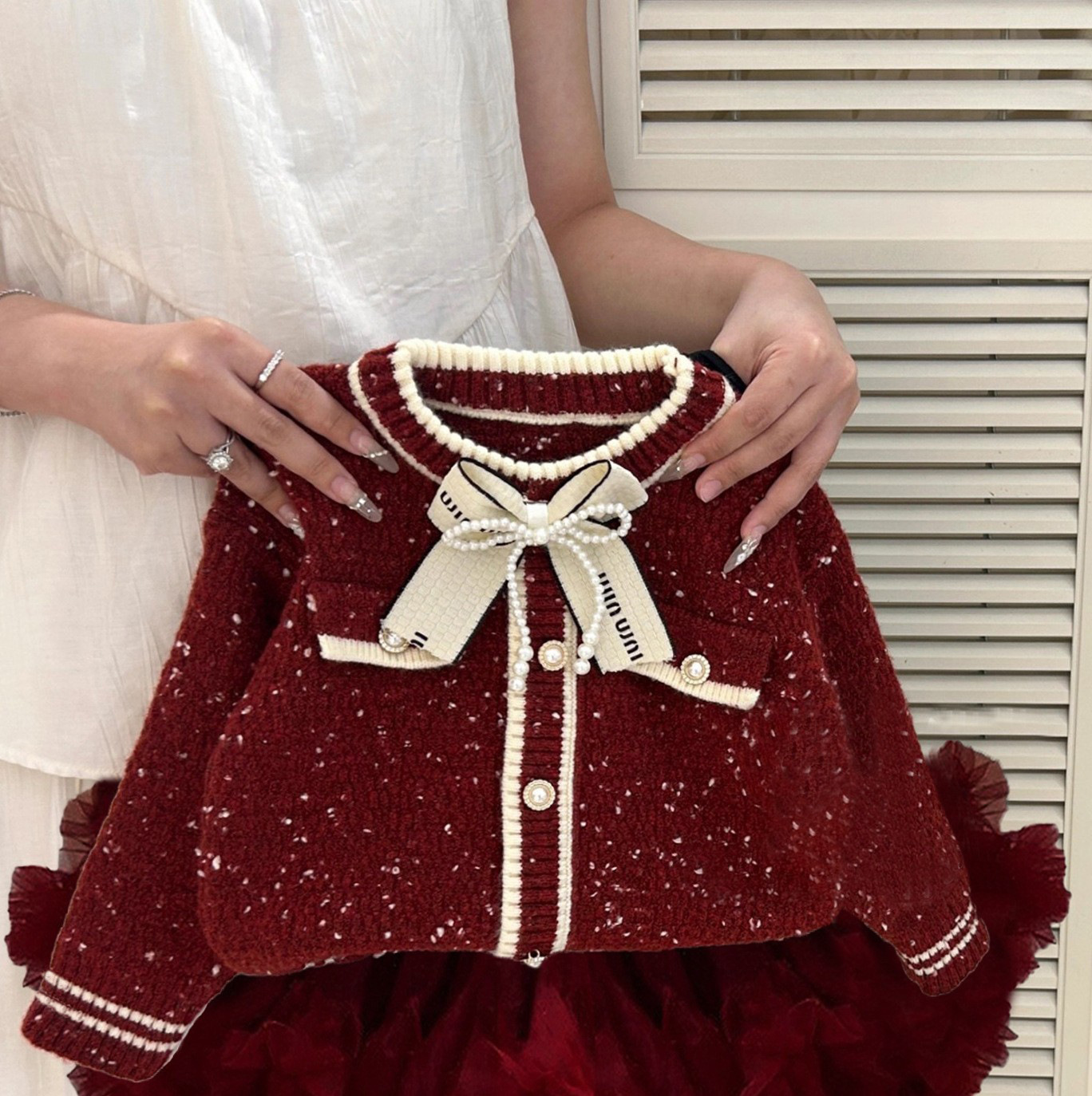 秋冬童装新款女童红色毛衣针织小樱桃针织衫宝宝蓬蓬裙子tutu裙