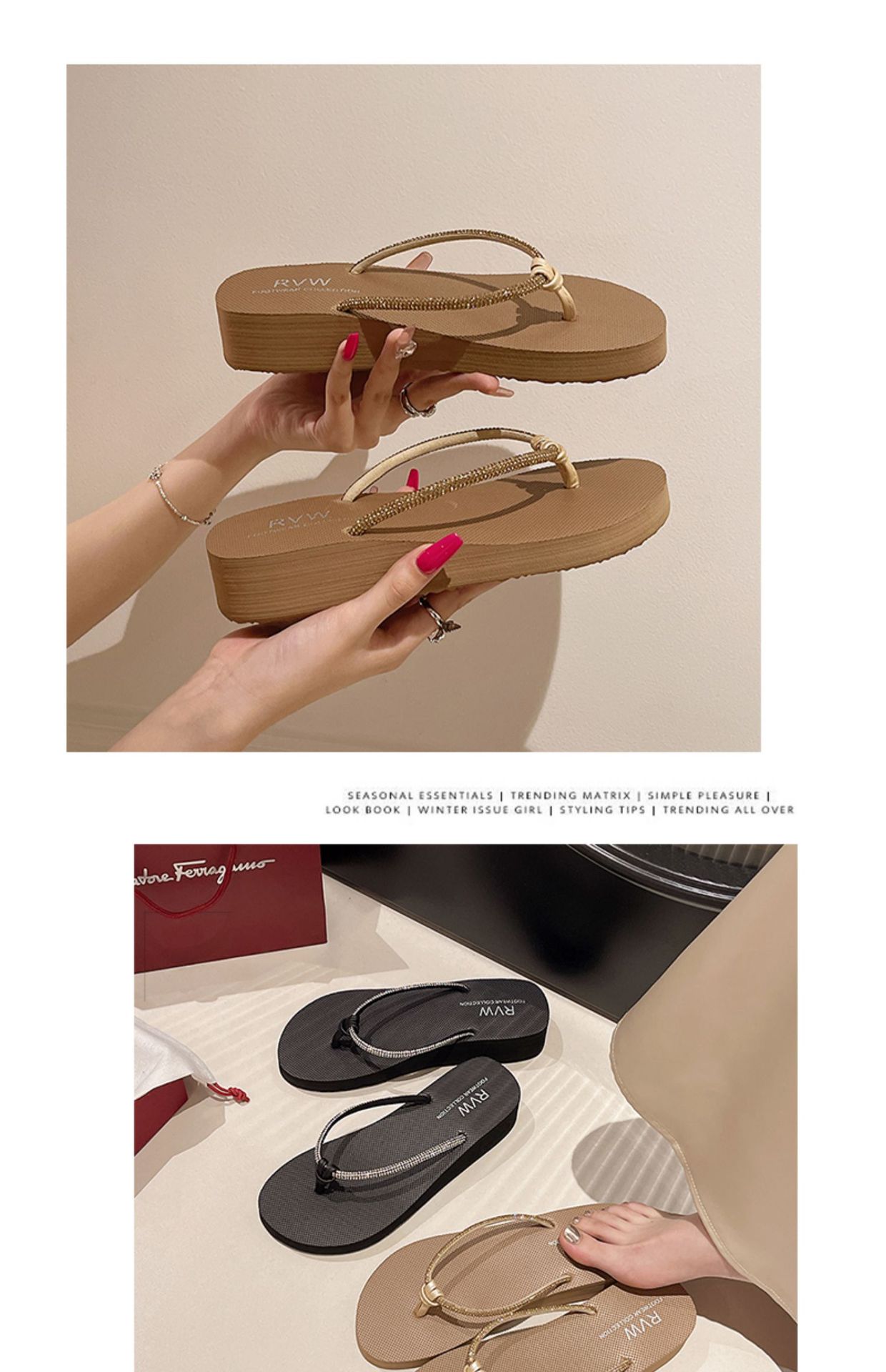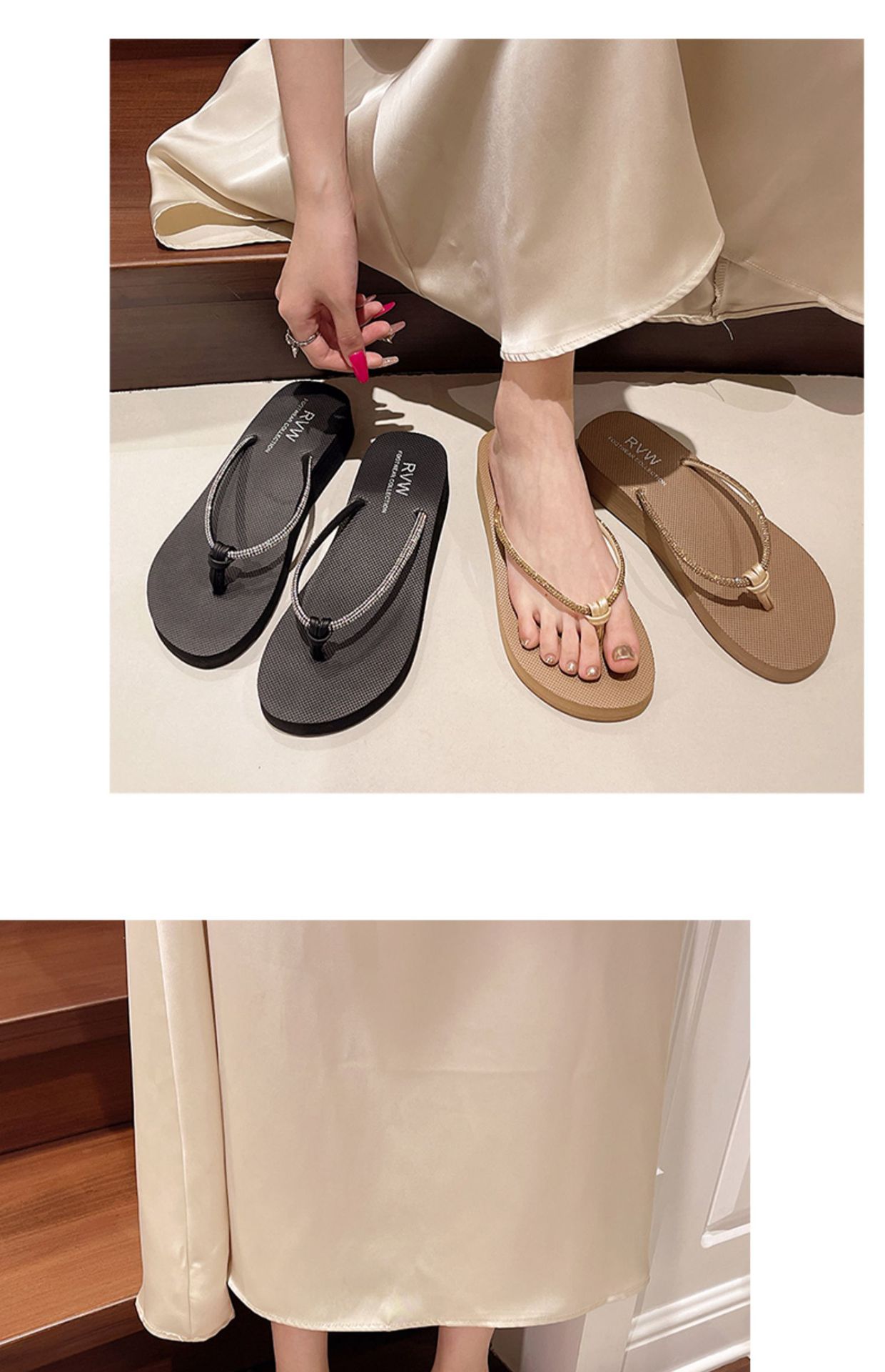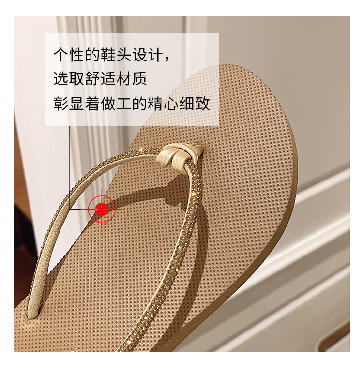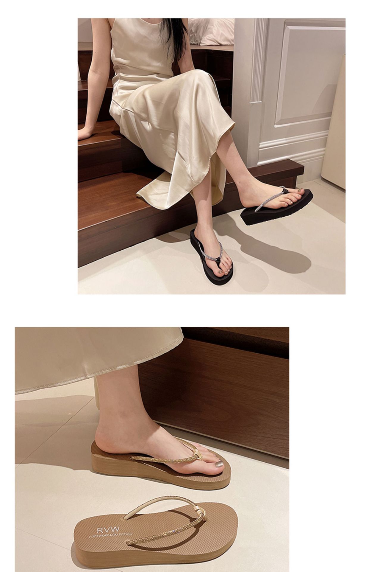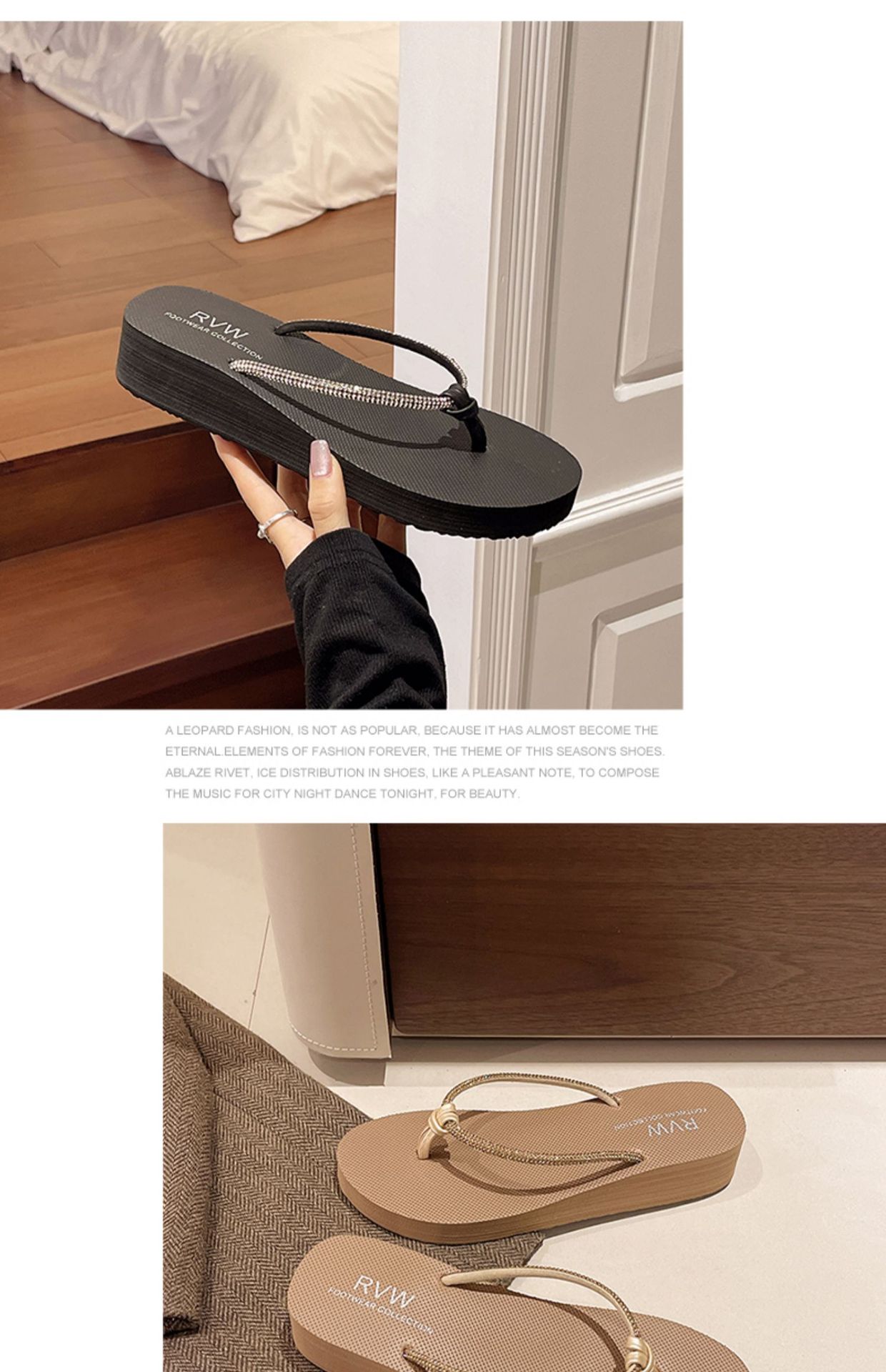 2025新款沙滩鞋拖鞋女夏时尚外穿海边厚底坡跟夹脚凉拖水钻人字拖