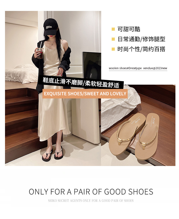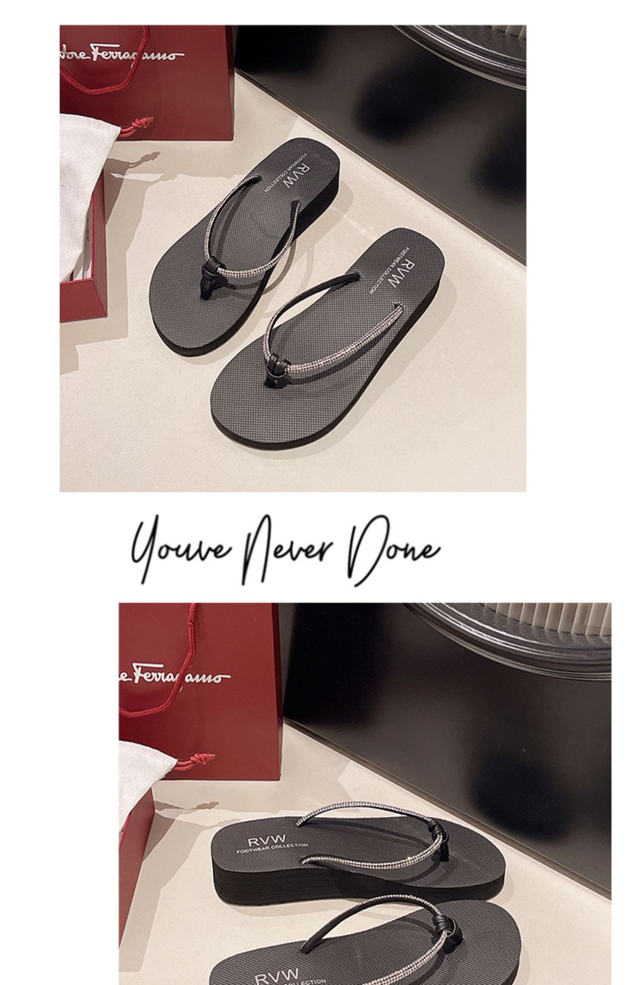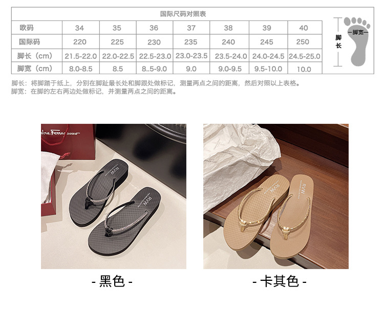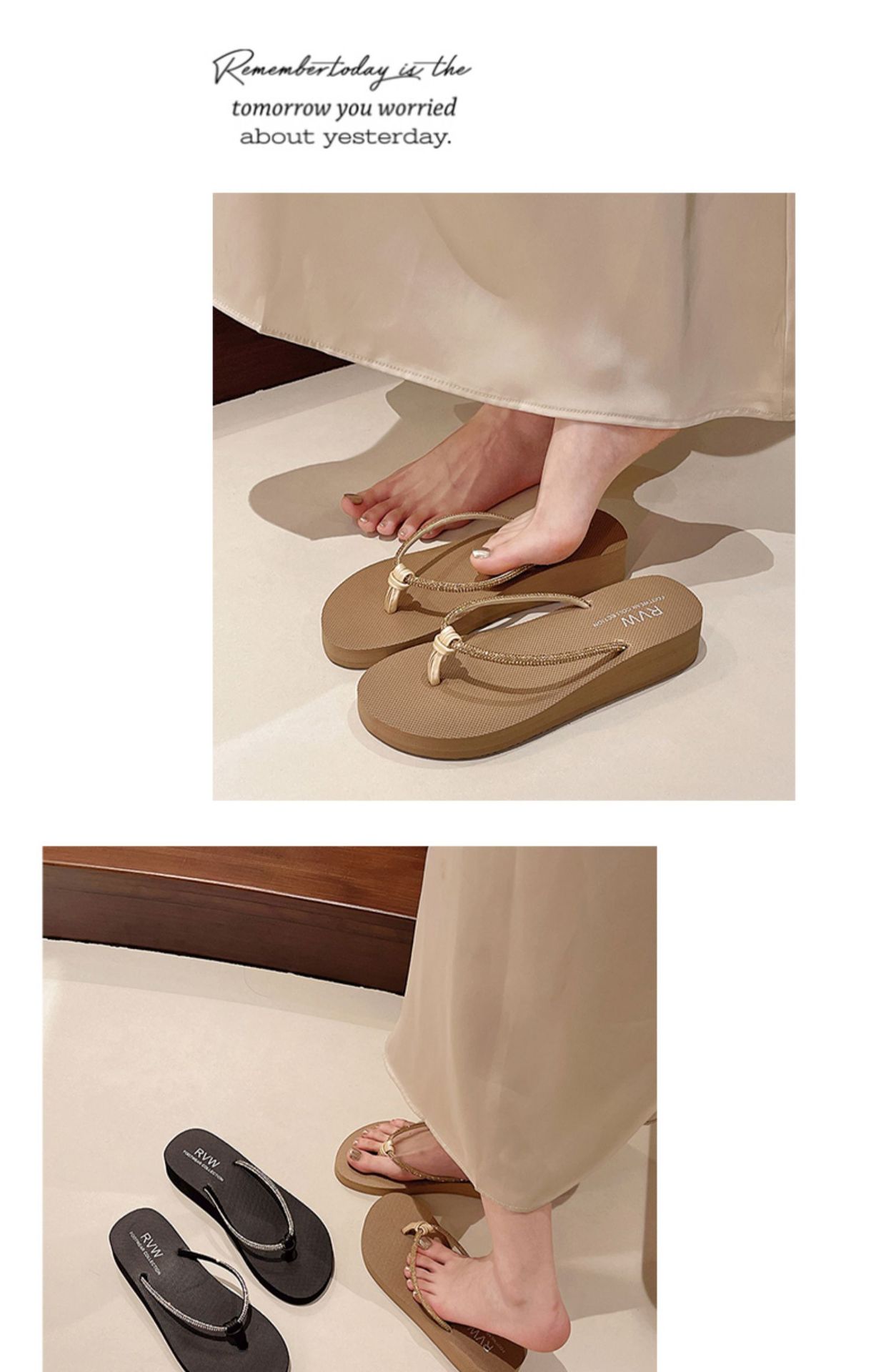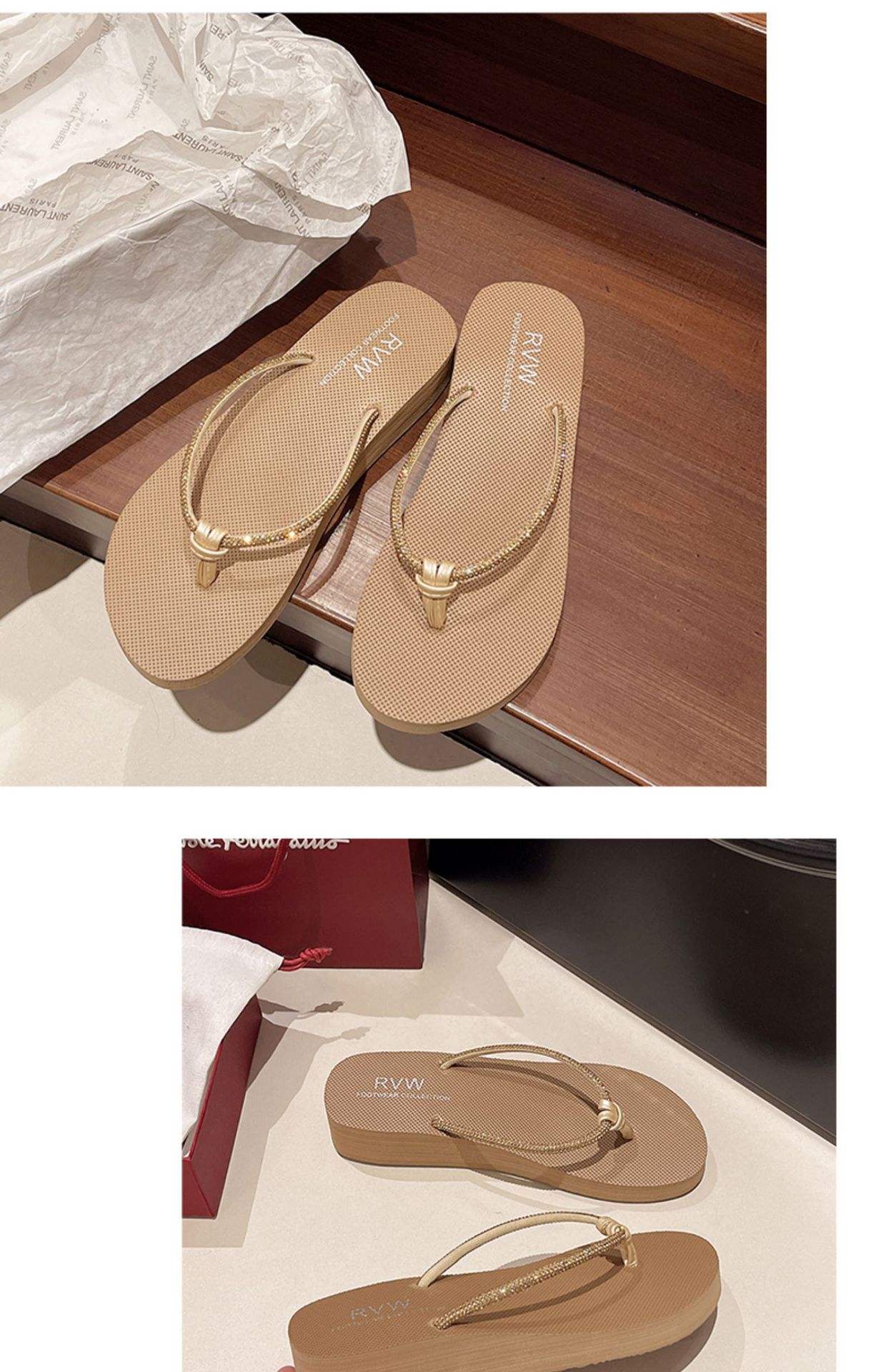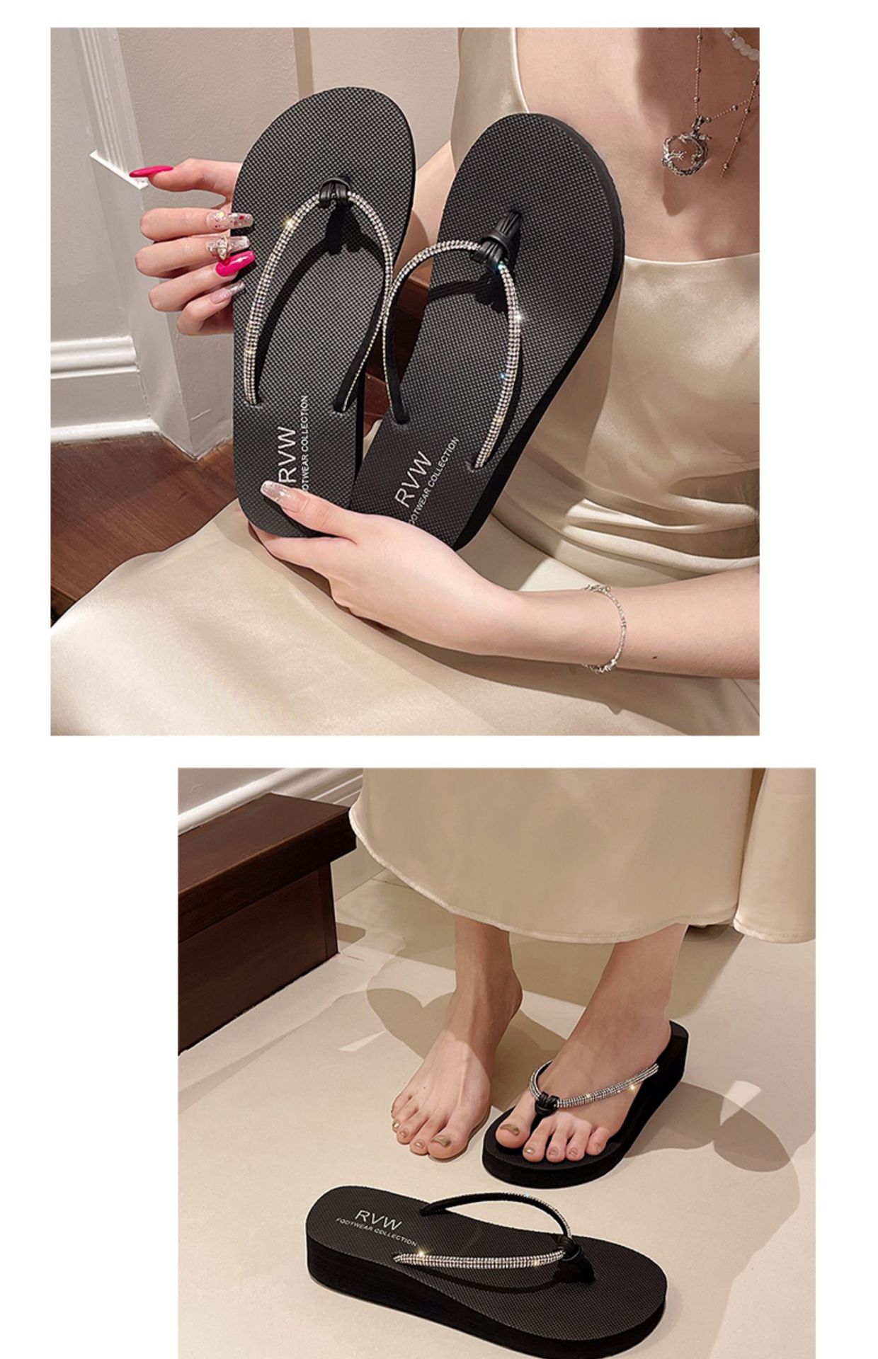 2025新款沙滩鞋拖鞋女夏时尚外穿海边厚底坡跟夹脚凉拖水钻人字拖