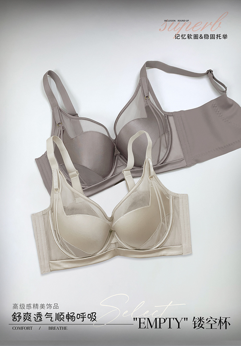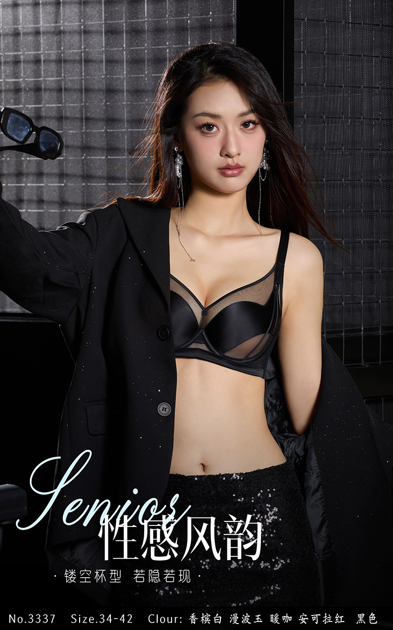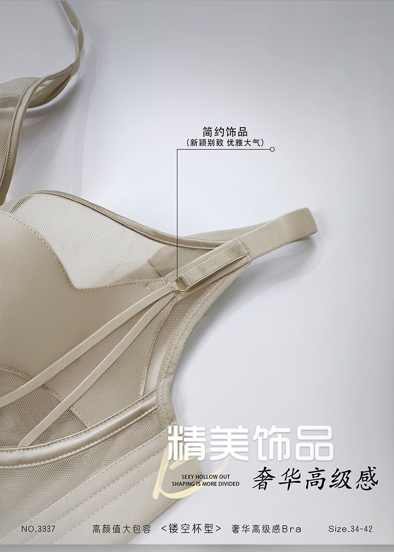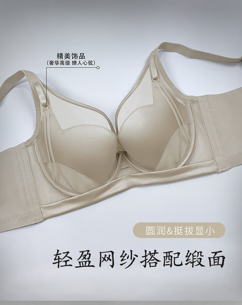 3337缎面无痕轻薄透气网纱软钢圈聚拢镂空杯内衣女调整型提拉文胸
