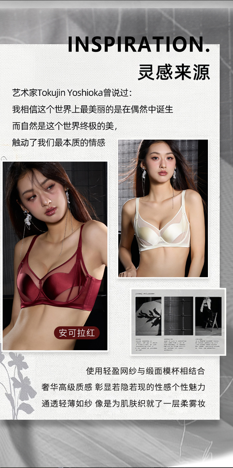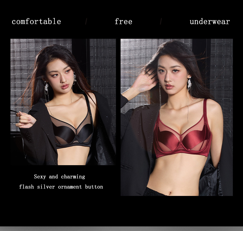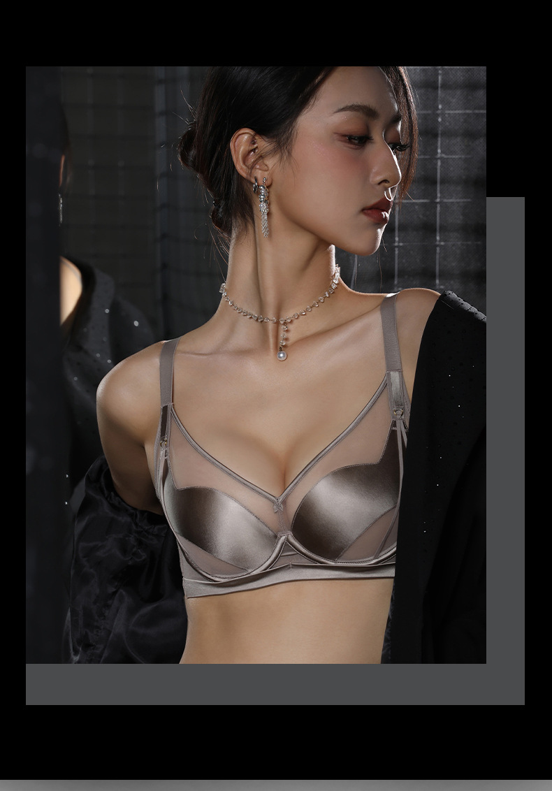 3337缎面无痕轻薄透气网纱软钢圈聚拢镂空杯内衣女调整型提拉文胸