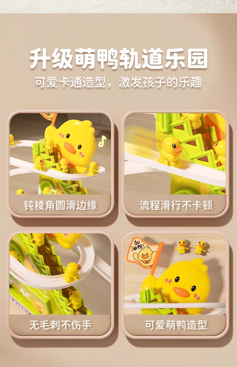 儿童益智小黄鸭子自动爬上楼梯电动轨道加油鸭滑滑梯玩具批发1岁3