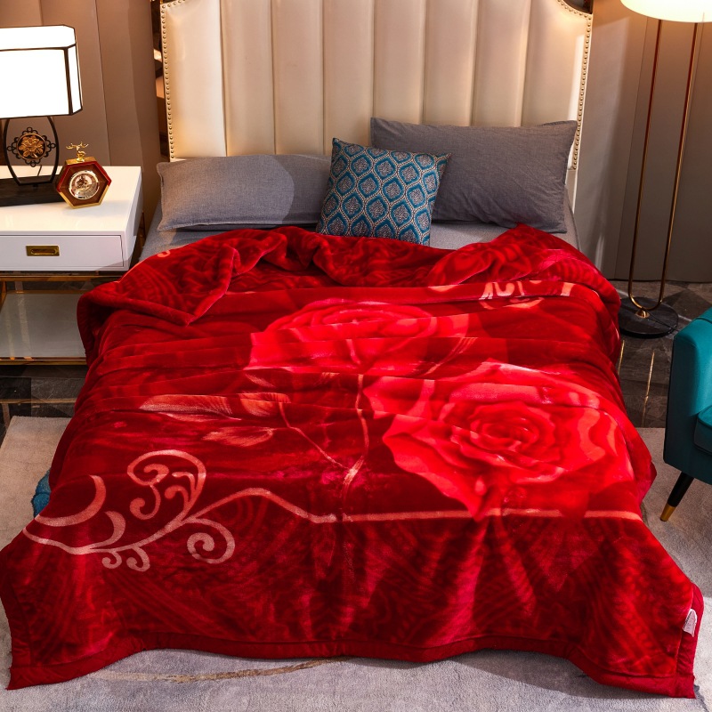 双层加厚拉舍尔毛毯绒毯大红婚庆礼品毛毯休闲盖毯儿童加厚毛毯冬