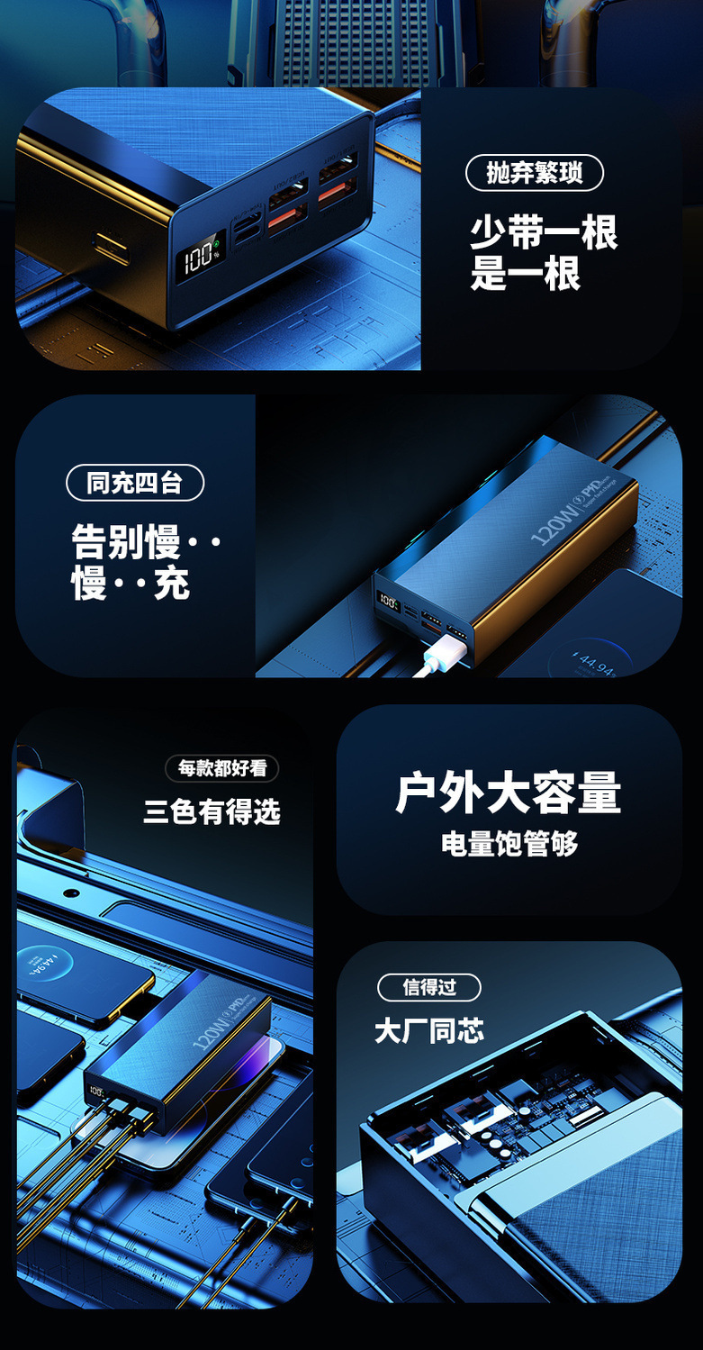 3C认证120W超级快充电宝80000大容量50000毫安20000便携移动电源