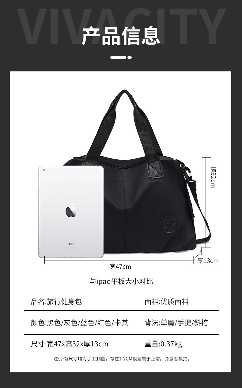 大容量短途旅行包新款纯色简约休闲运动健身包男女手提斜挎登机包