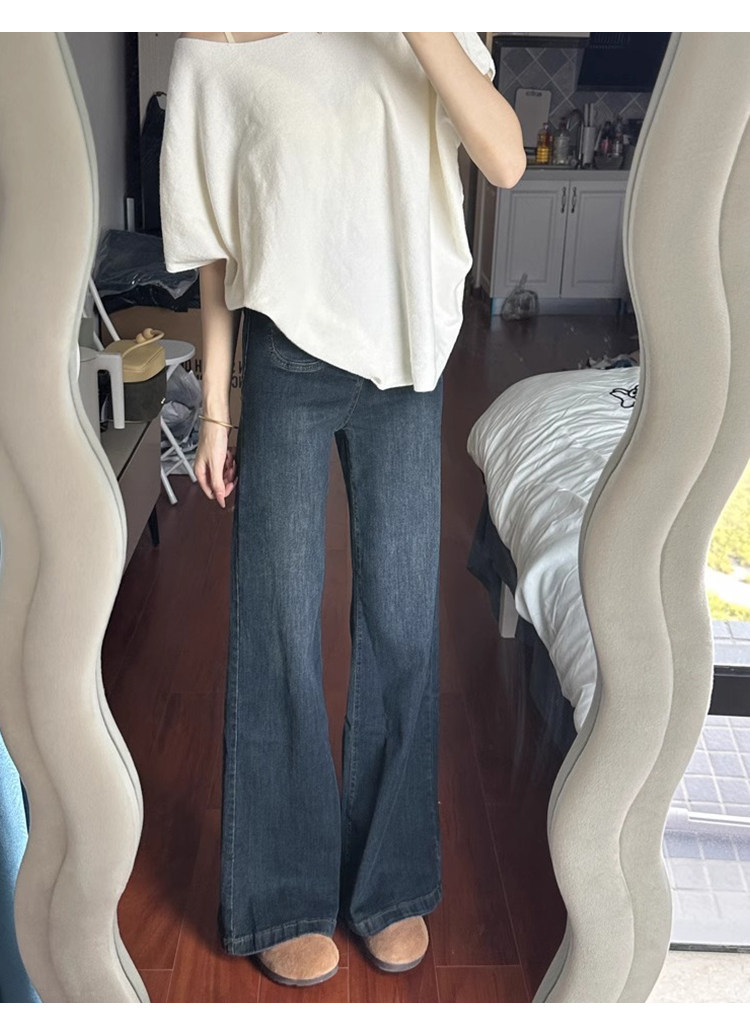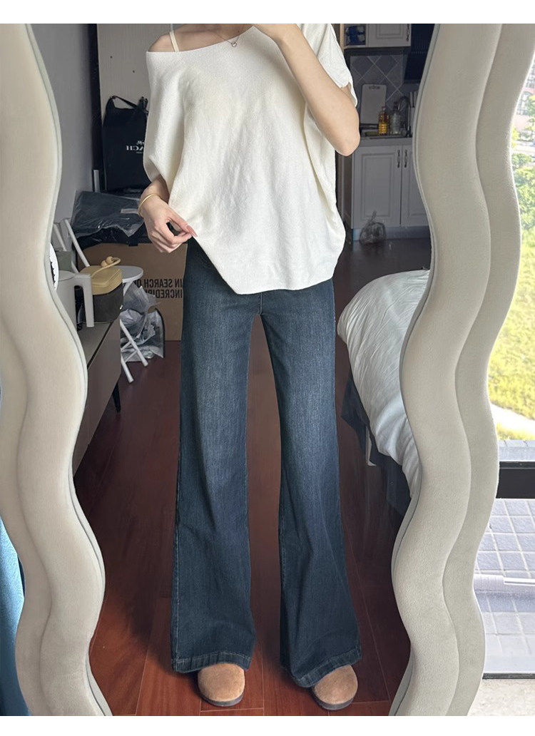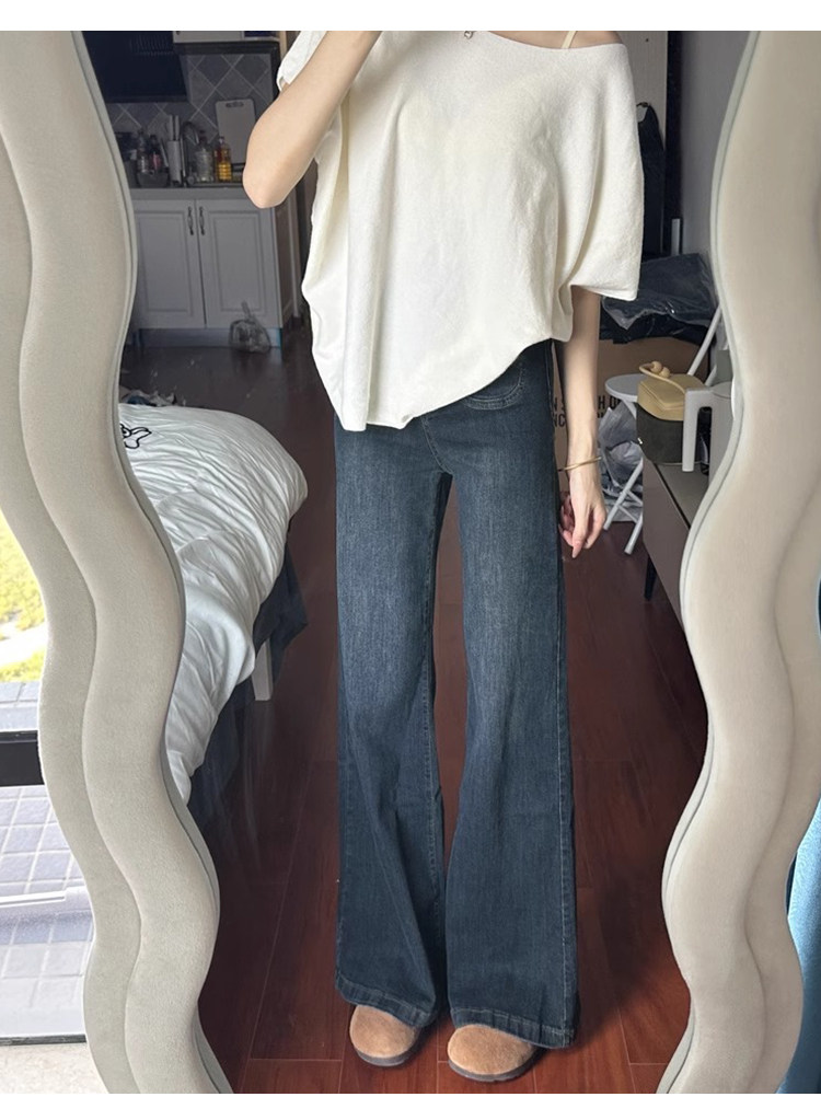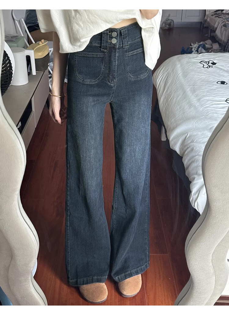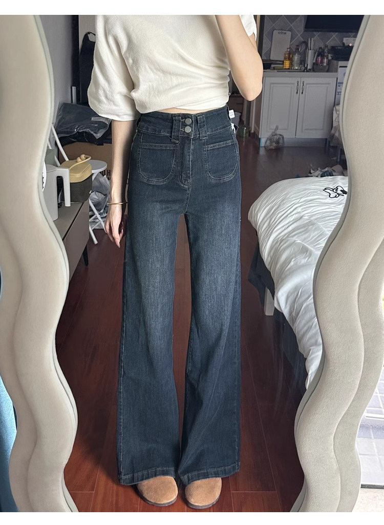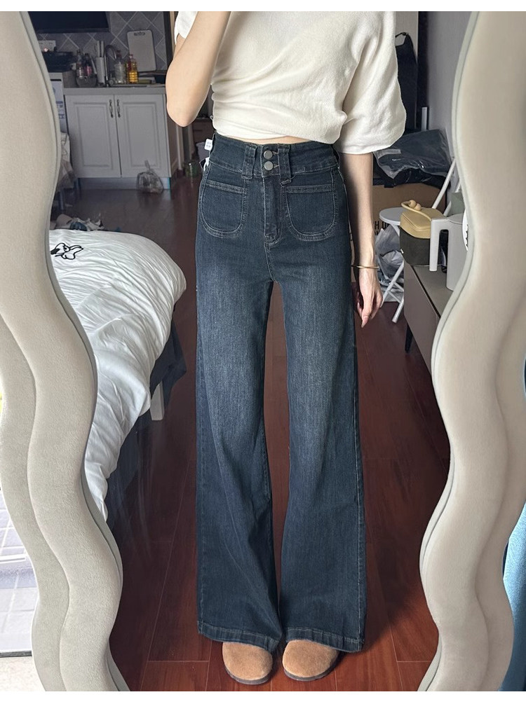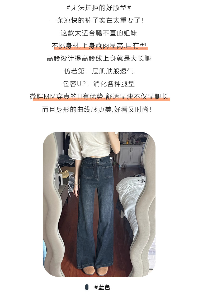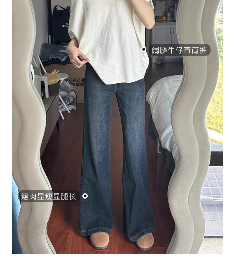 复古直筒牛仔裤女弹力大码秋季新款胖mm宽松显瘦梨形身材阔腿裤子