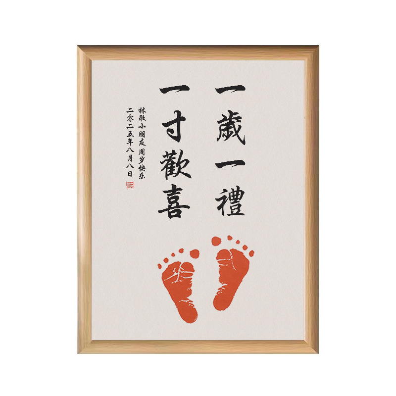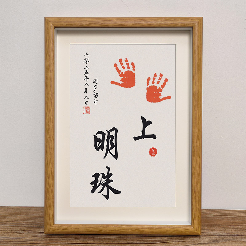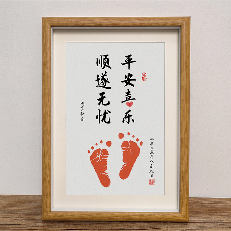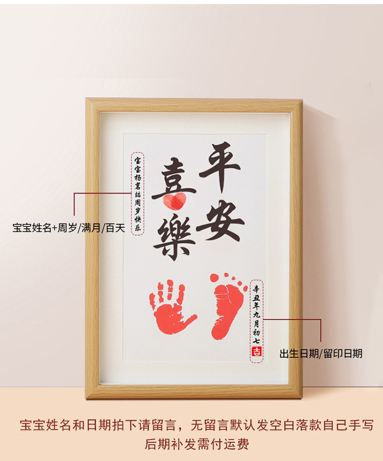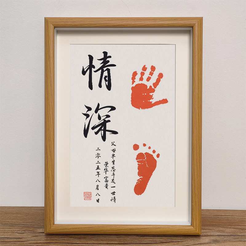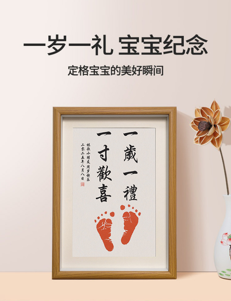 实木宝宝手足印纪念相框日期姓名可改周岁满月留念装饰画框批发