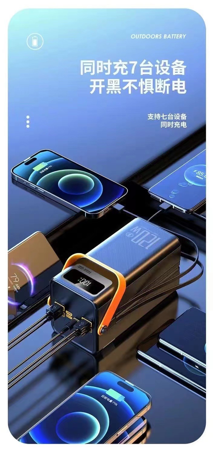 批发120W超级快充200000毫安充电宝大容量户外直播自带线移动电源