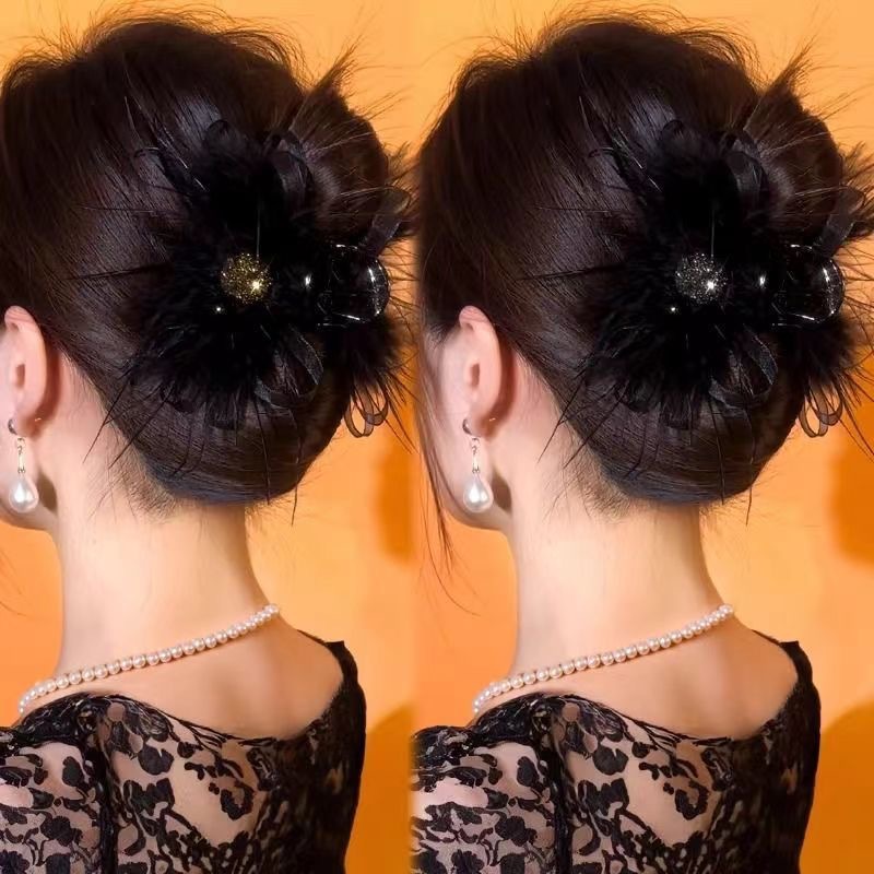 秋冬款羽毛抓夹高级感鸵鸟毛发夹后脑勺毛毛发抓超仙鲨鱼夹子头饰