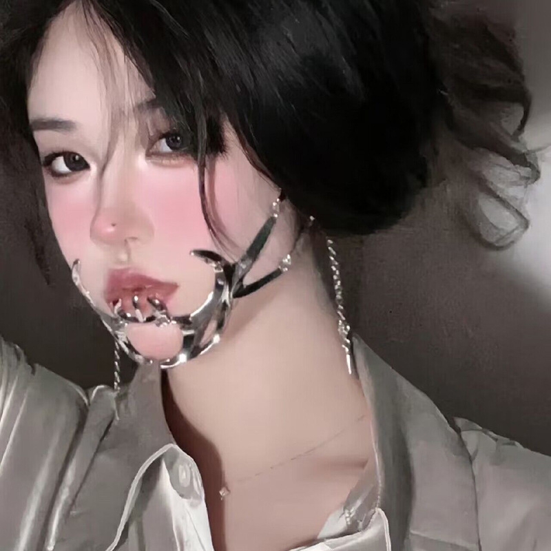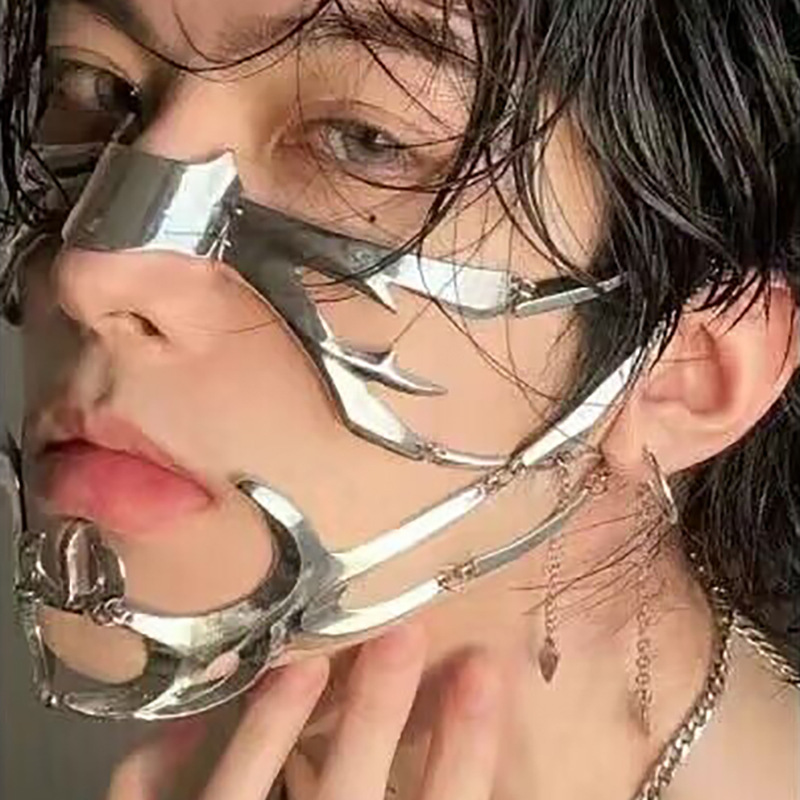 唇环赛博朋克金属面具机械感cos面罩拍照道具下巴半脸面饰女潮酷