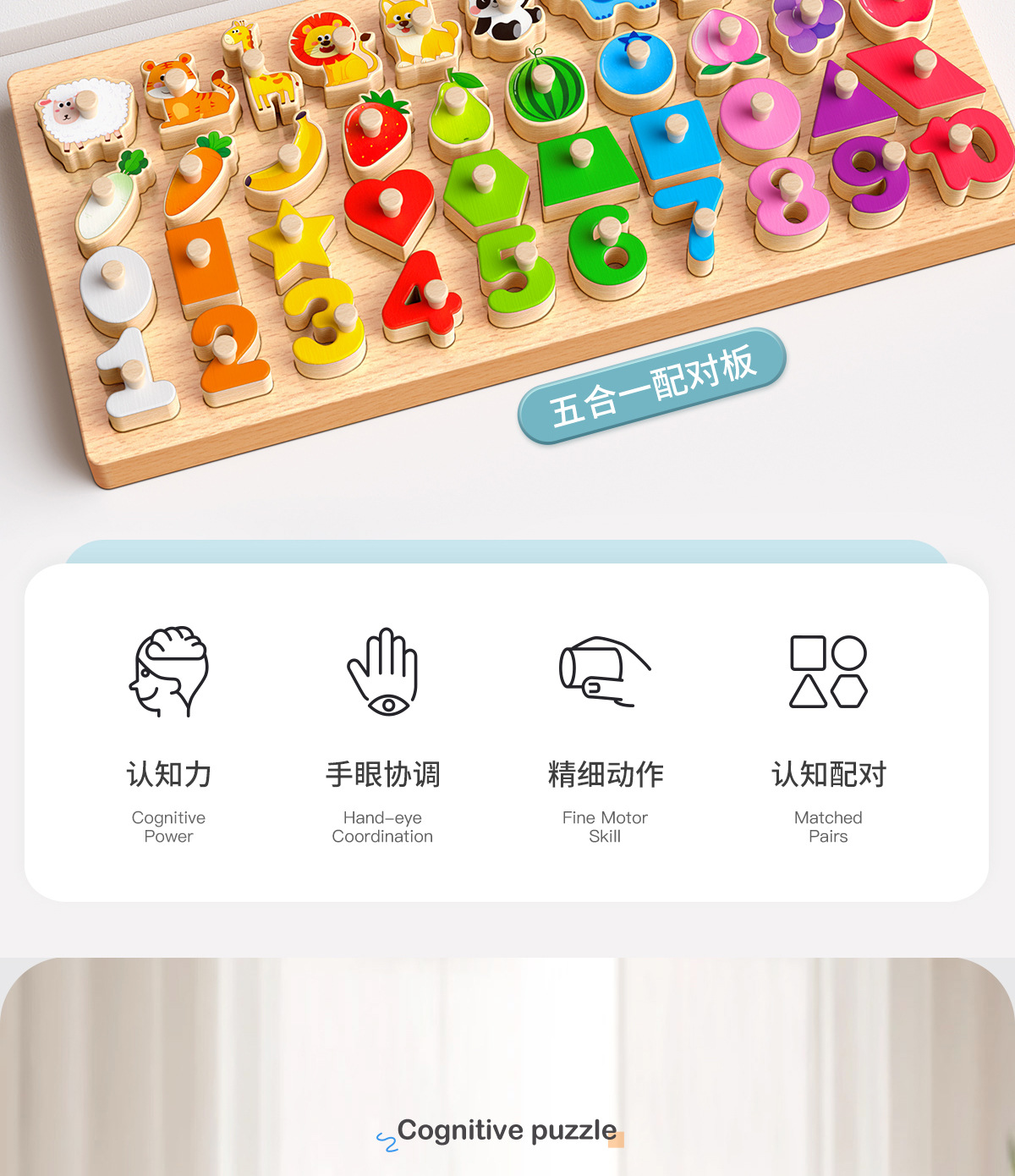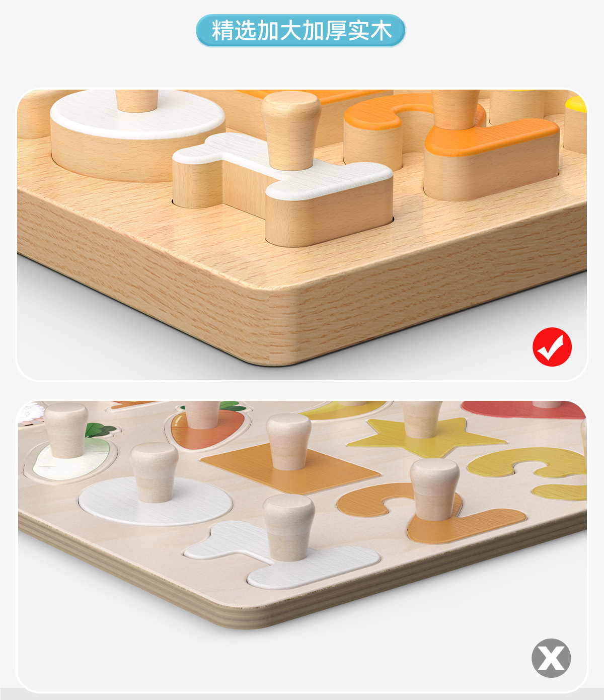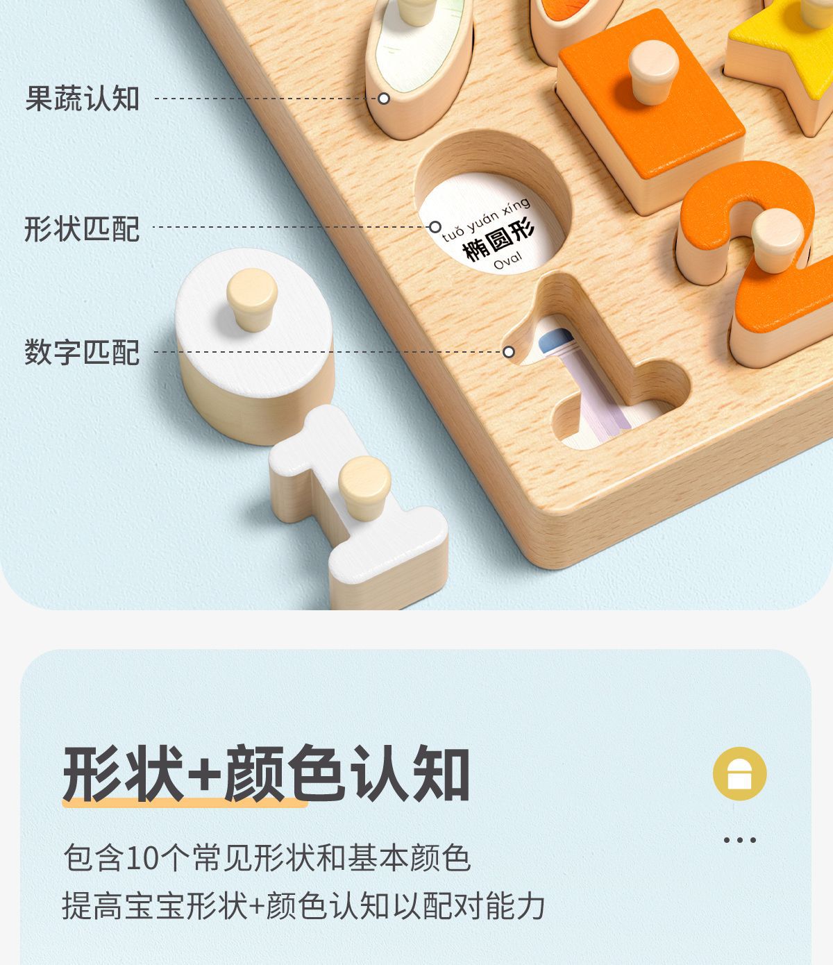 儿童手抓板蒙氏早教益智玩具形状配对宝宝0-3岁教具积木认知拼图1