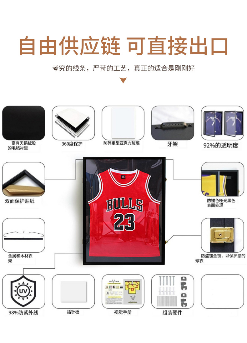 跨境球衣展示框装裱架亚马逊跨境棒球篮球足球球衣展示收藏画框