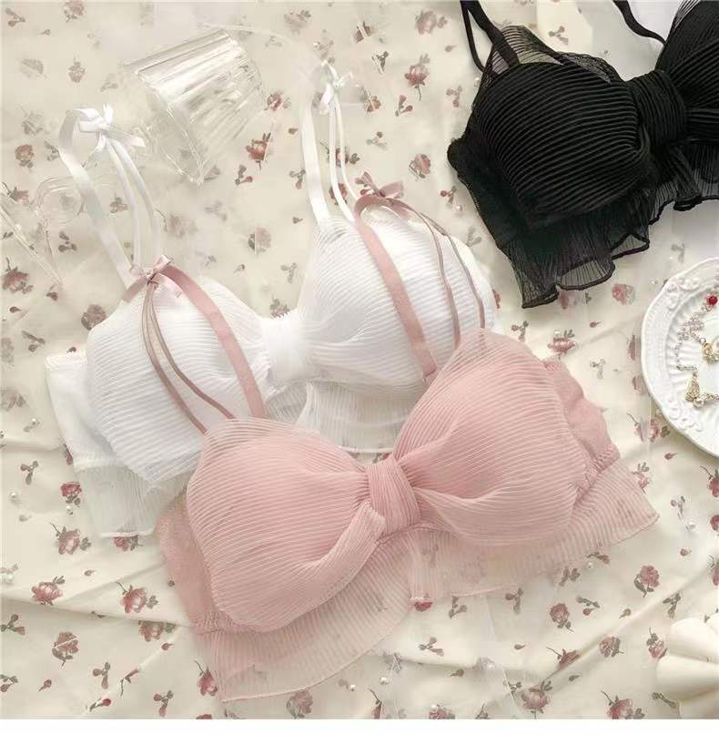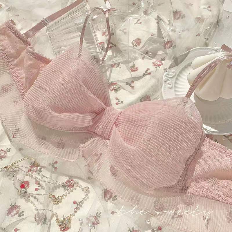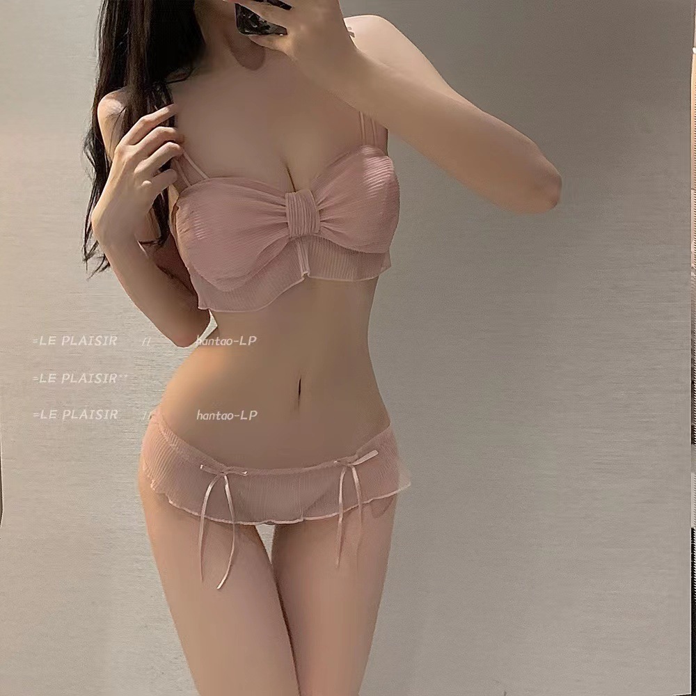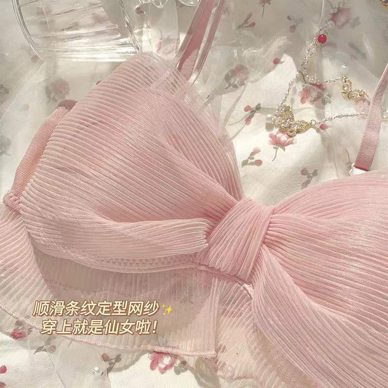 日系网纱蕾丝少女文胸套装网纱简约性感诱惑蝴蝶结纯欲吊带内衣女