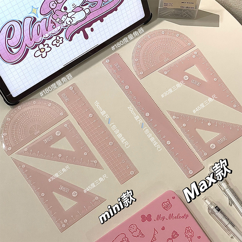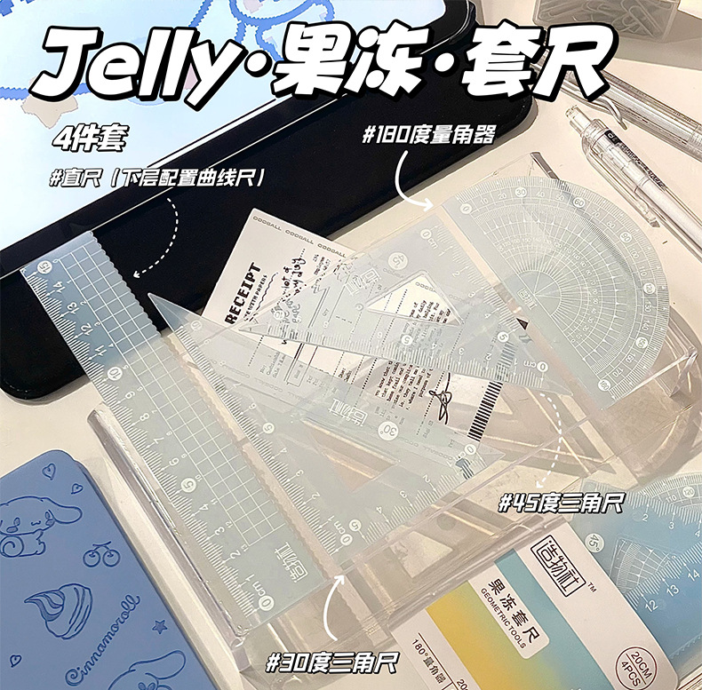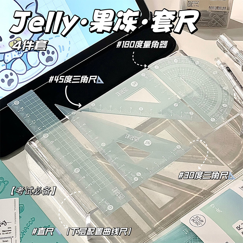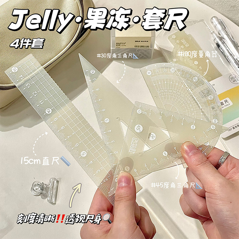 数学多功能可爱尺子高颜值尺子套装四件套学生20cm文具尺套装批发