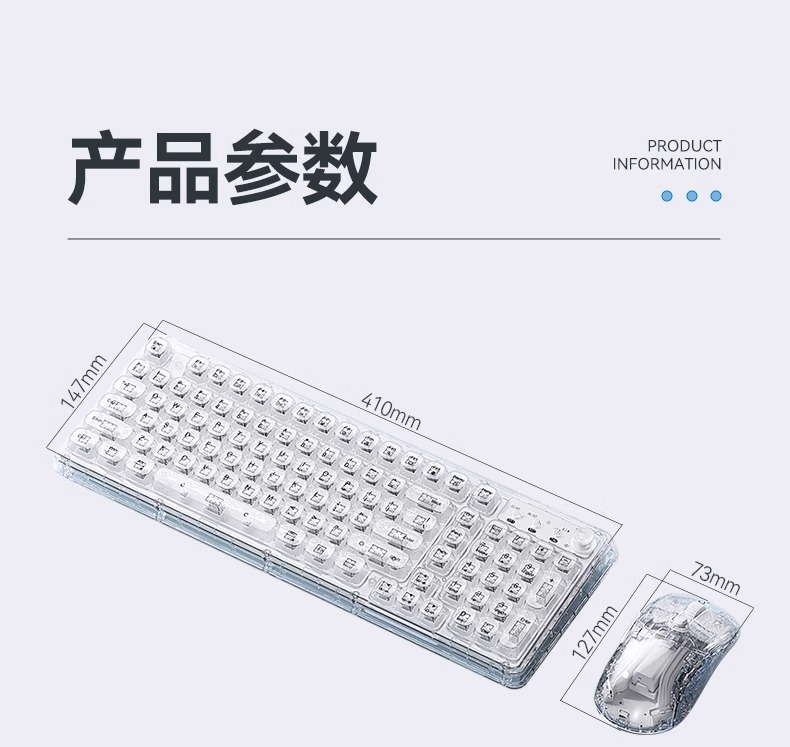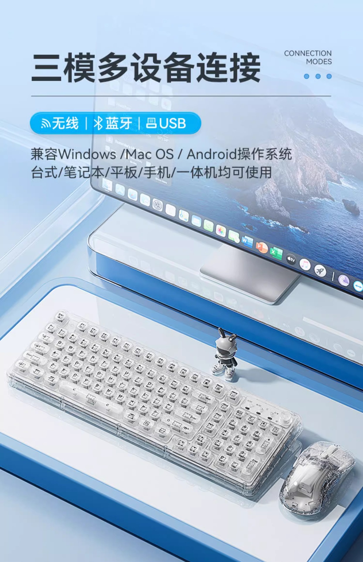 梦族Z99冰块透明无线蓝牙水晶键盘鼠标套装机械电脑女生办公静音