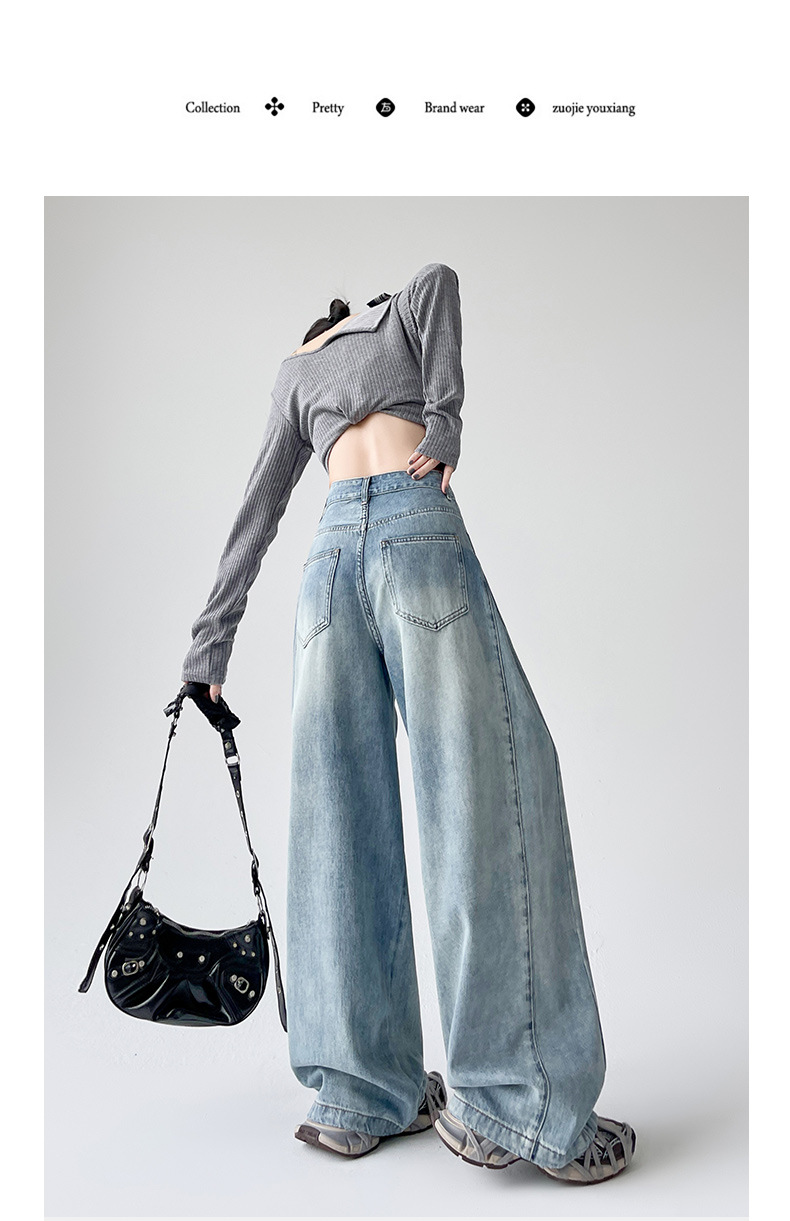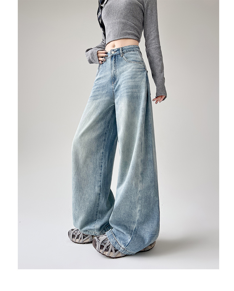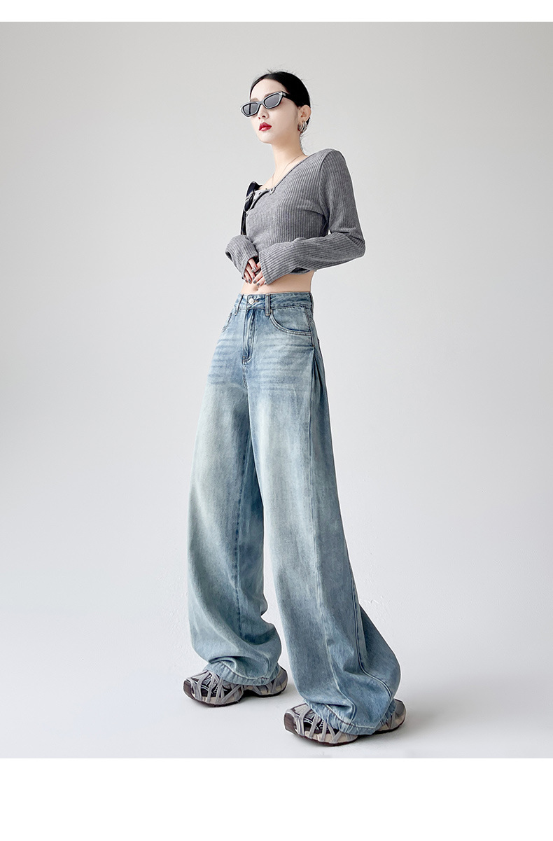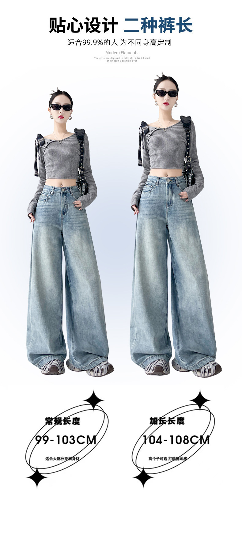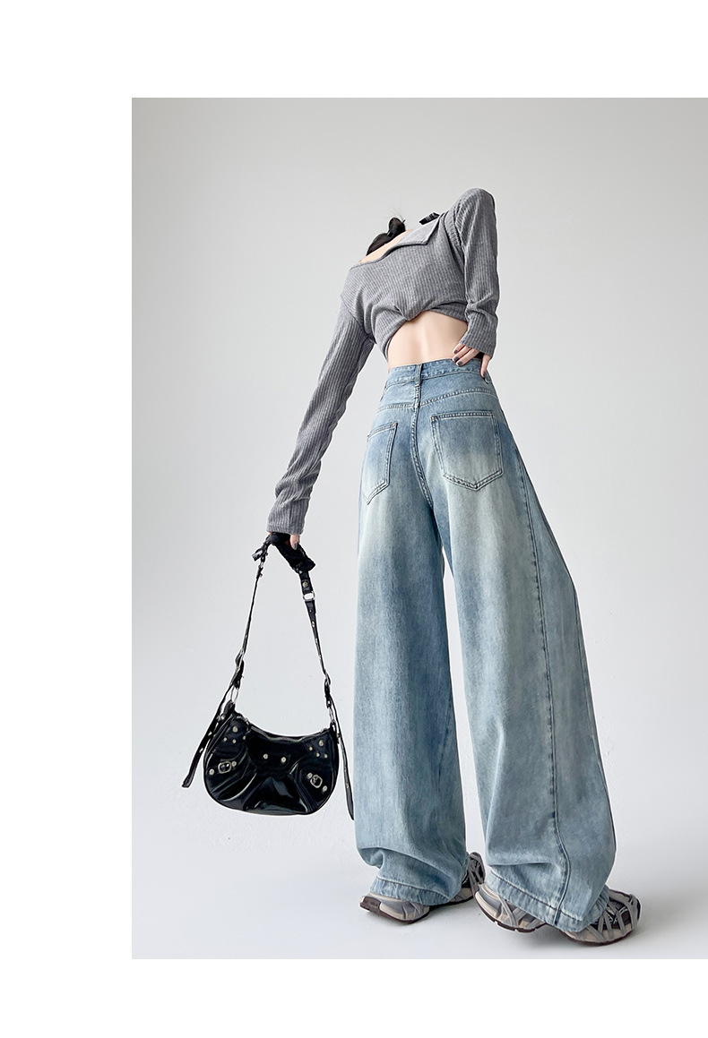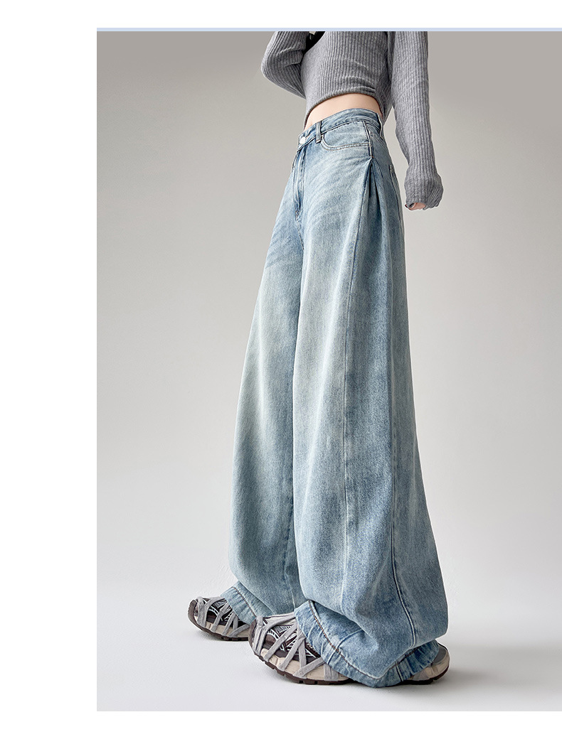高腰宽松水洗牛仔裤女显瘦垂感直筒裤拖地裤阔腿裤长裤子蓝色长裤