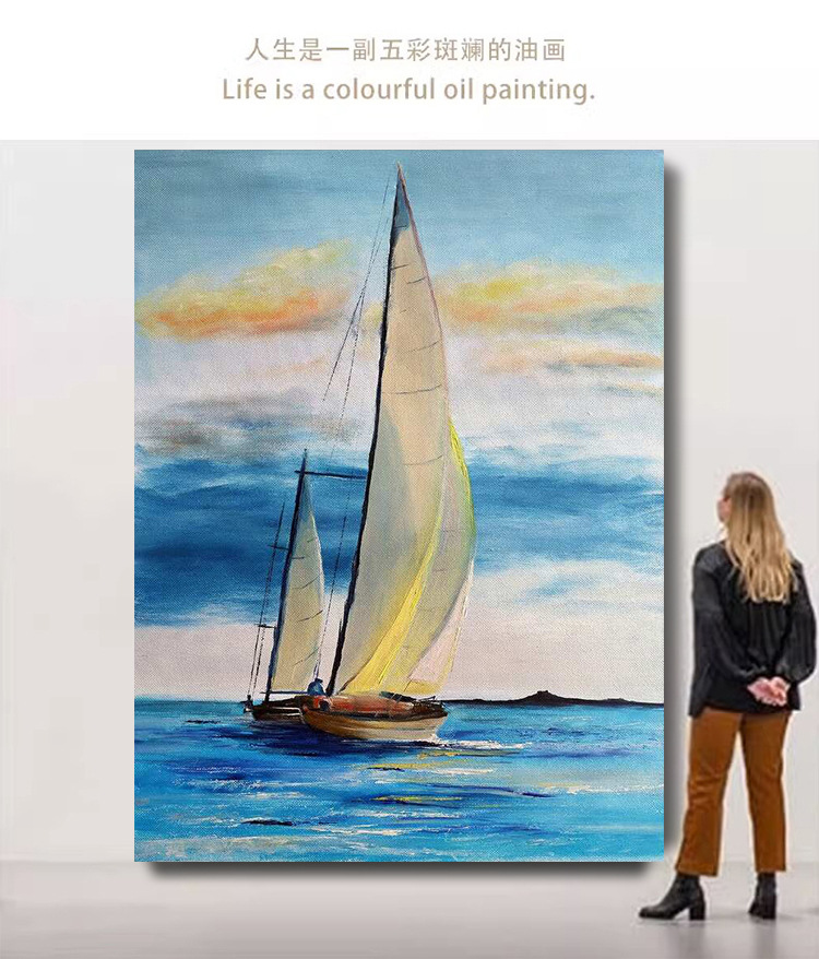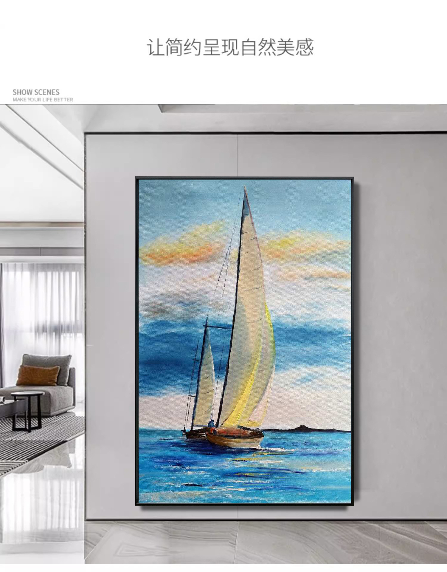 纯手绘油画【帆】北欧风客厅玄关书房装饰画酒店餐厅商场立体挂画
