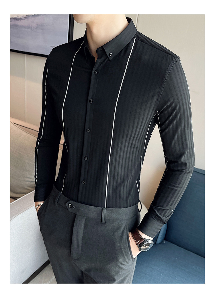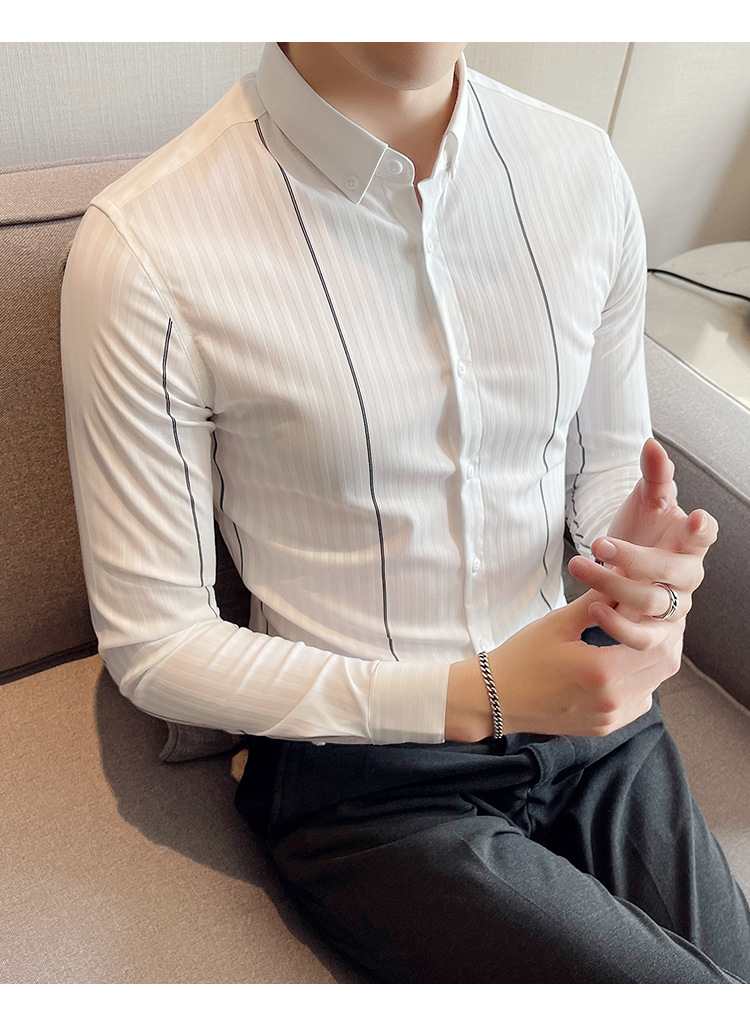 轻商务男长袖衬衫 修身韩版条纹弹力休闲打底衬衣 男生约会潮衣服