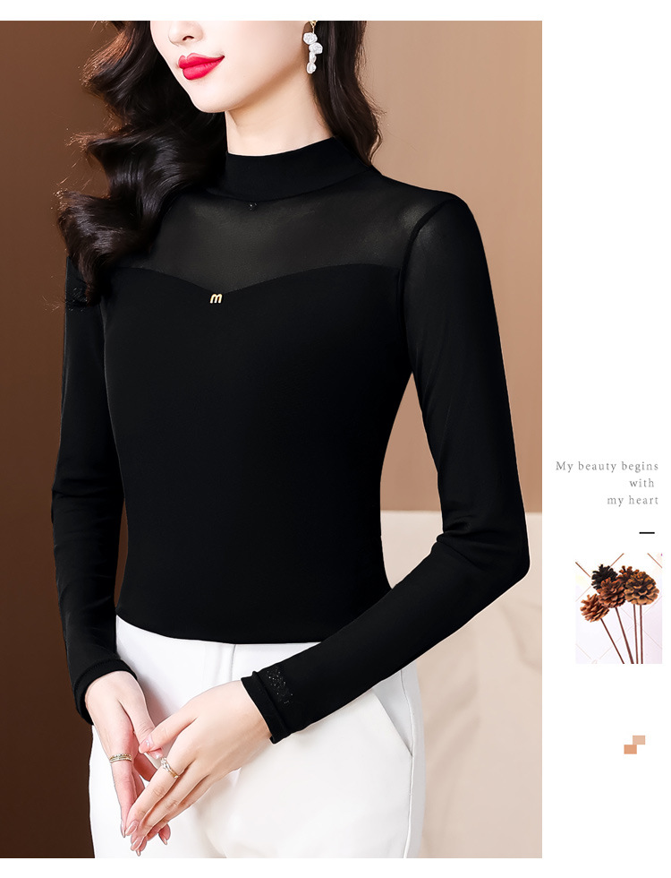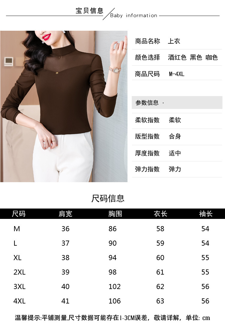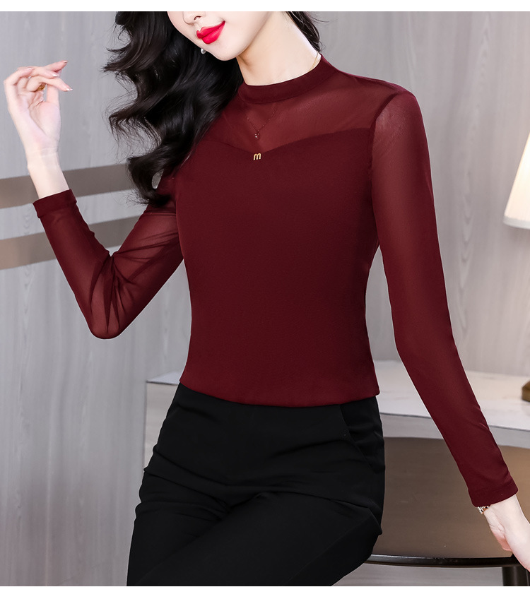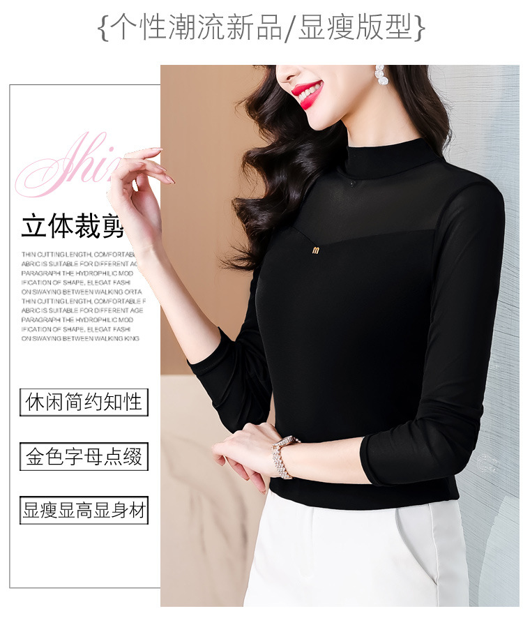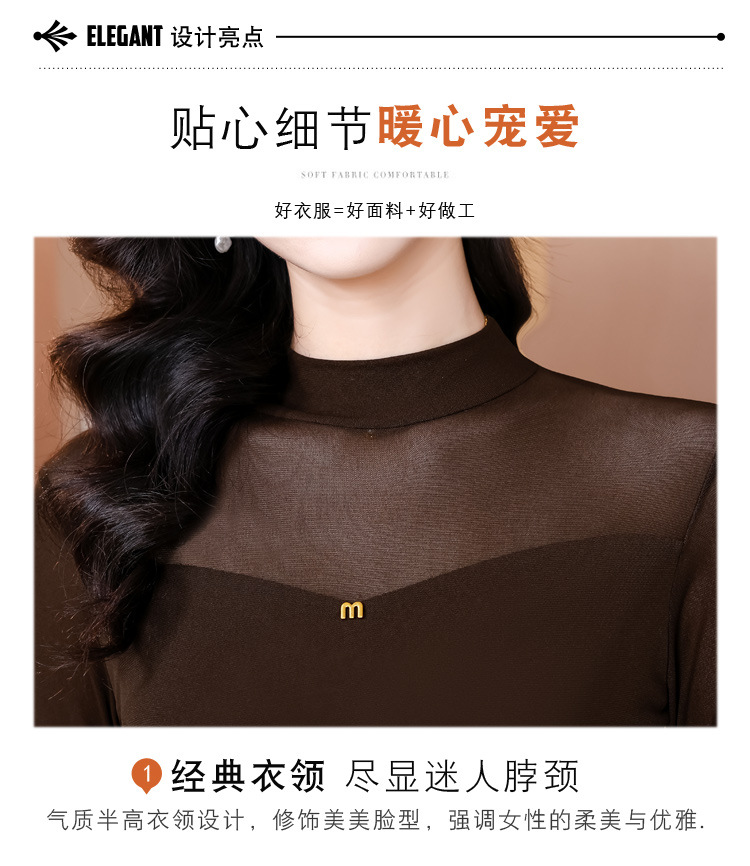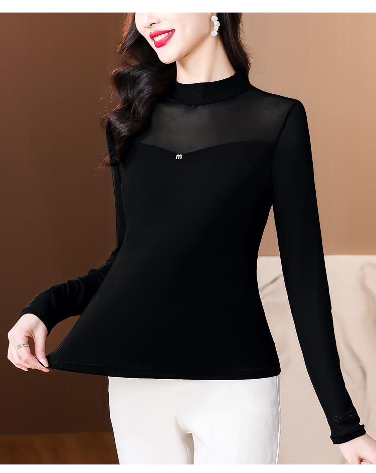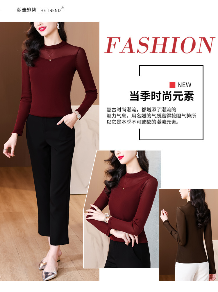 时尚妈妈网纱长袖T恤2024秋装新款洋气减龄打底衫中老年上衣小衫