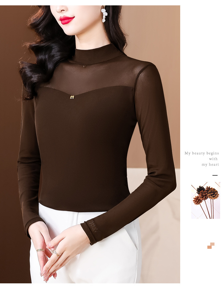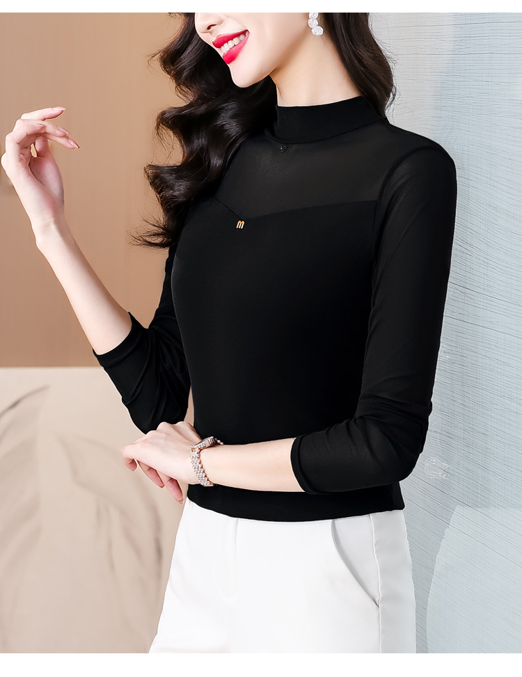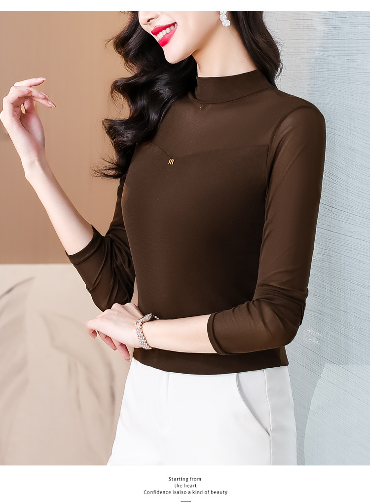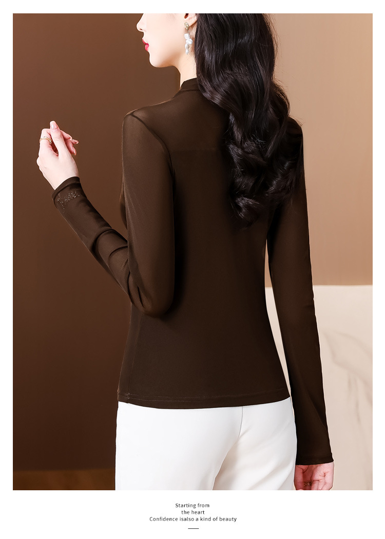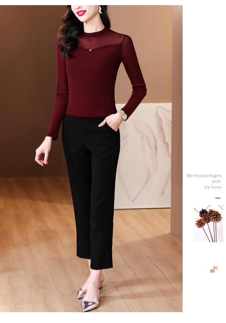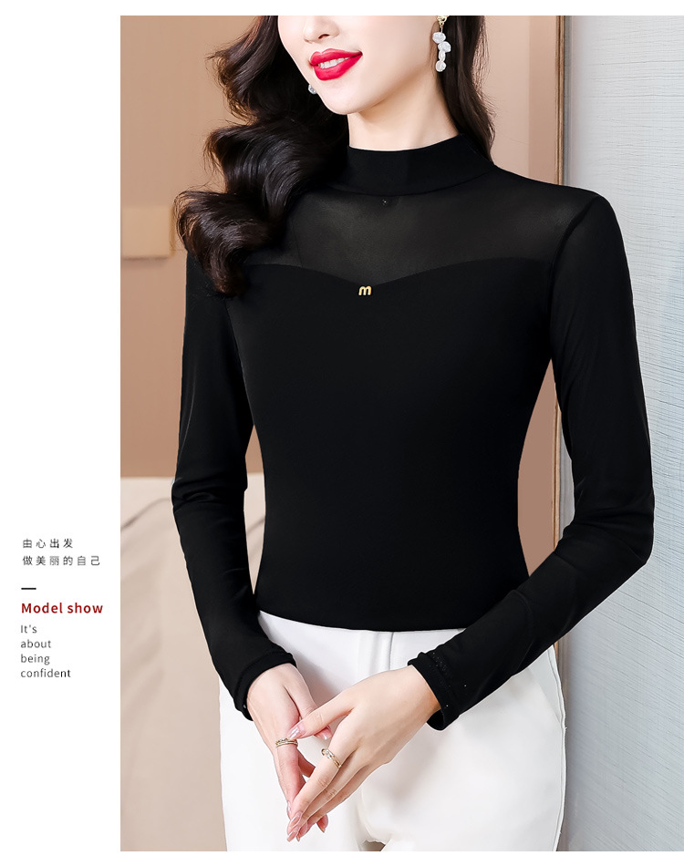 时尚妈妈网纱长袖T恤2024秋装新款洋气减龄打底衫中老年上衣小衫