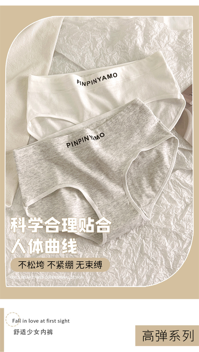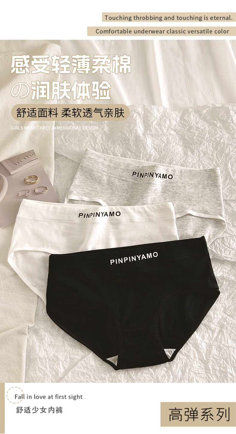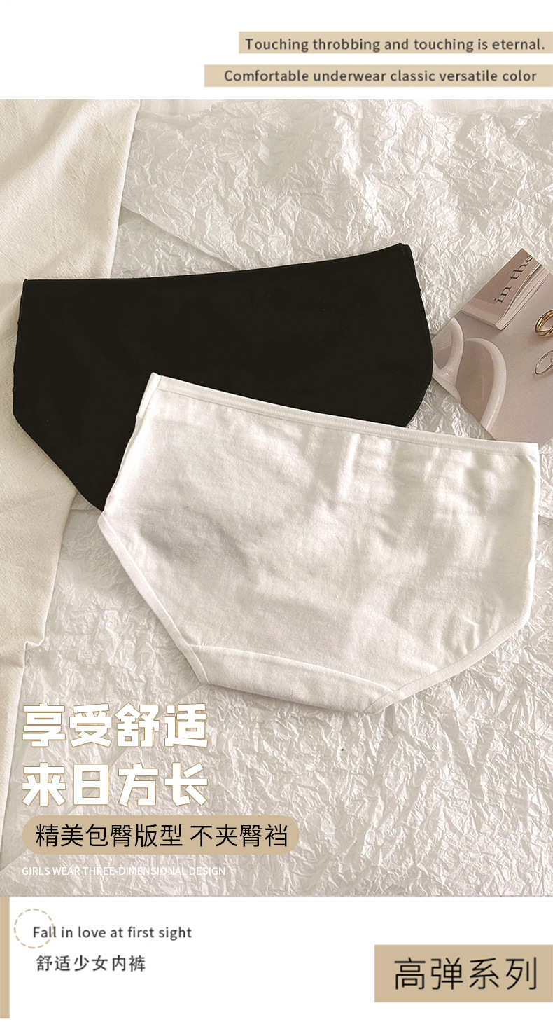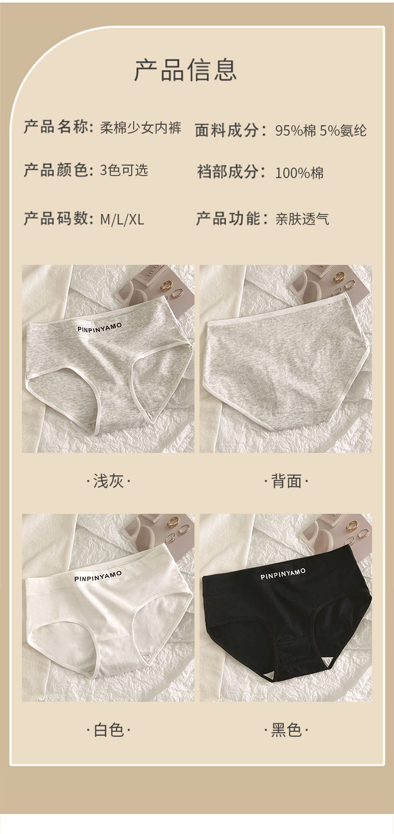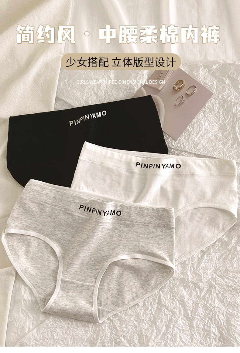 纯棉内裤女士中腰纯棉裆透气舒适简约少女纯色无痕棉质三角底裤头