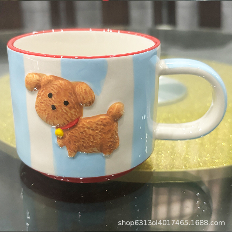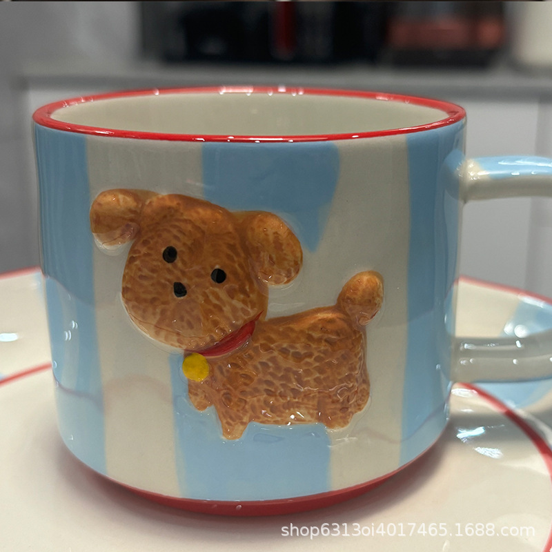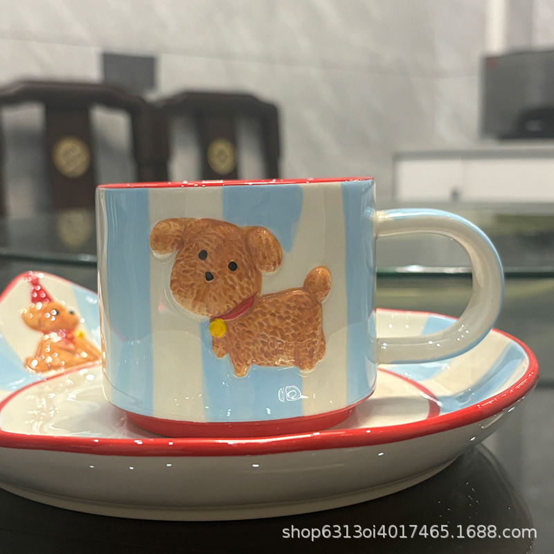 高颜值手绘生日狗陶瓷马克杯套餐可爱儿童早餐杯子水杯带盘子