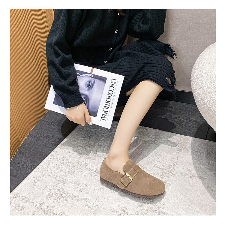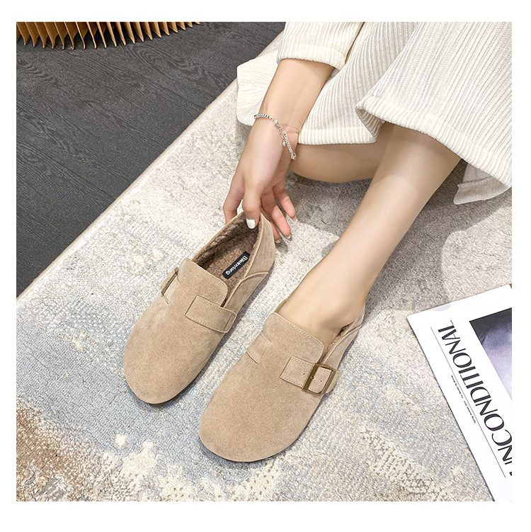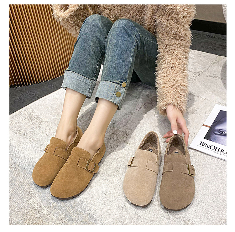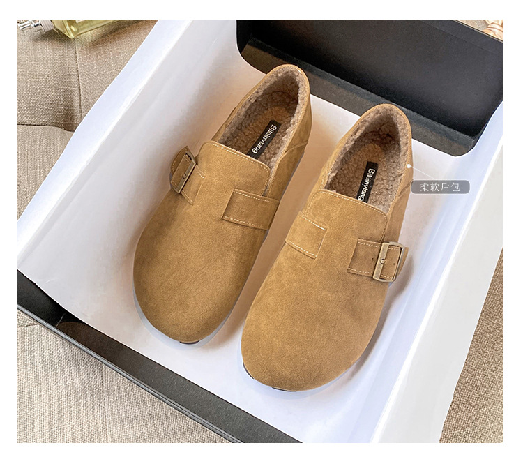 勃肯鞋女2023新款秋冬孕妇鞋子一脚蹬女鞋加绒豆豆软底博肯鞋全包